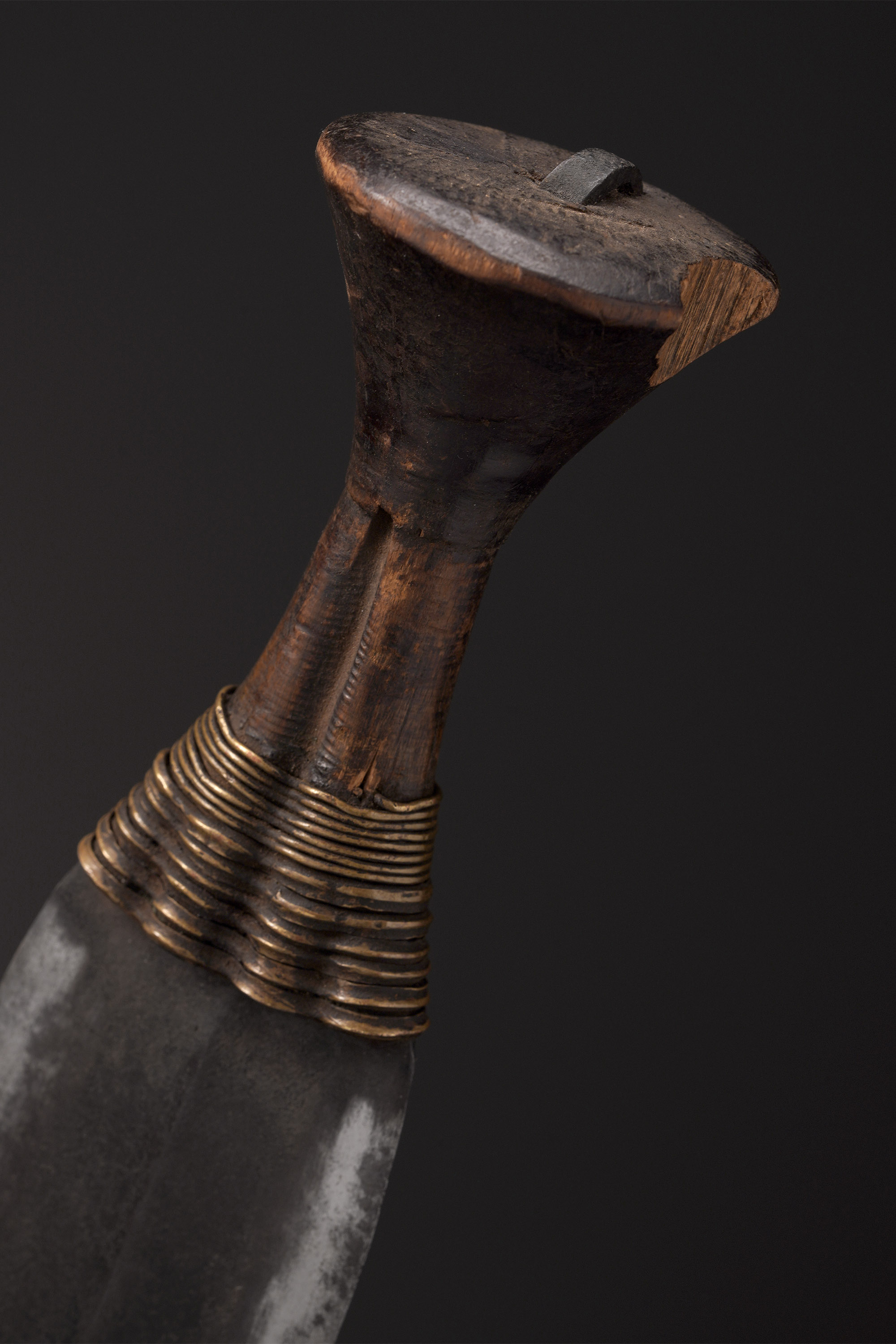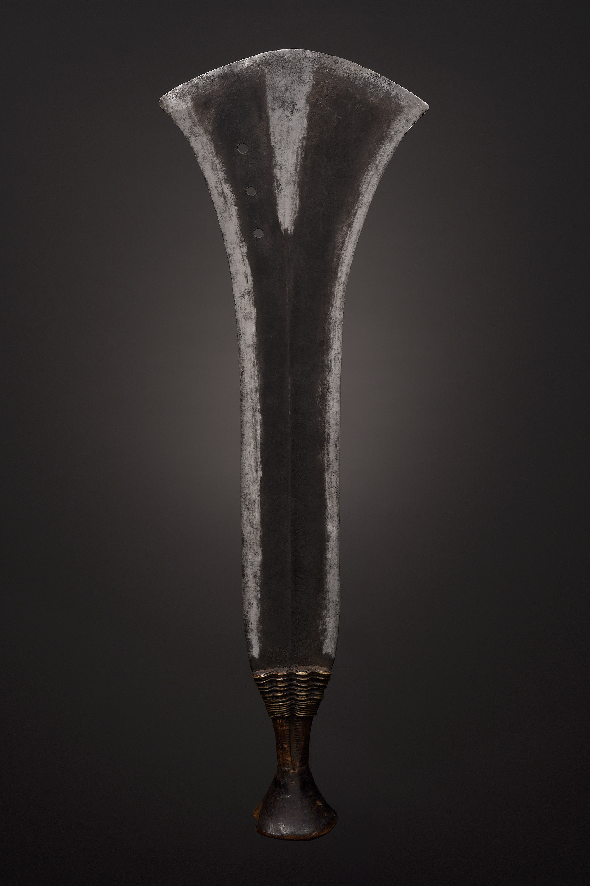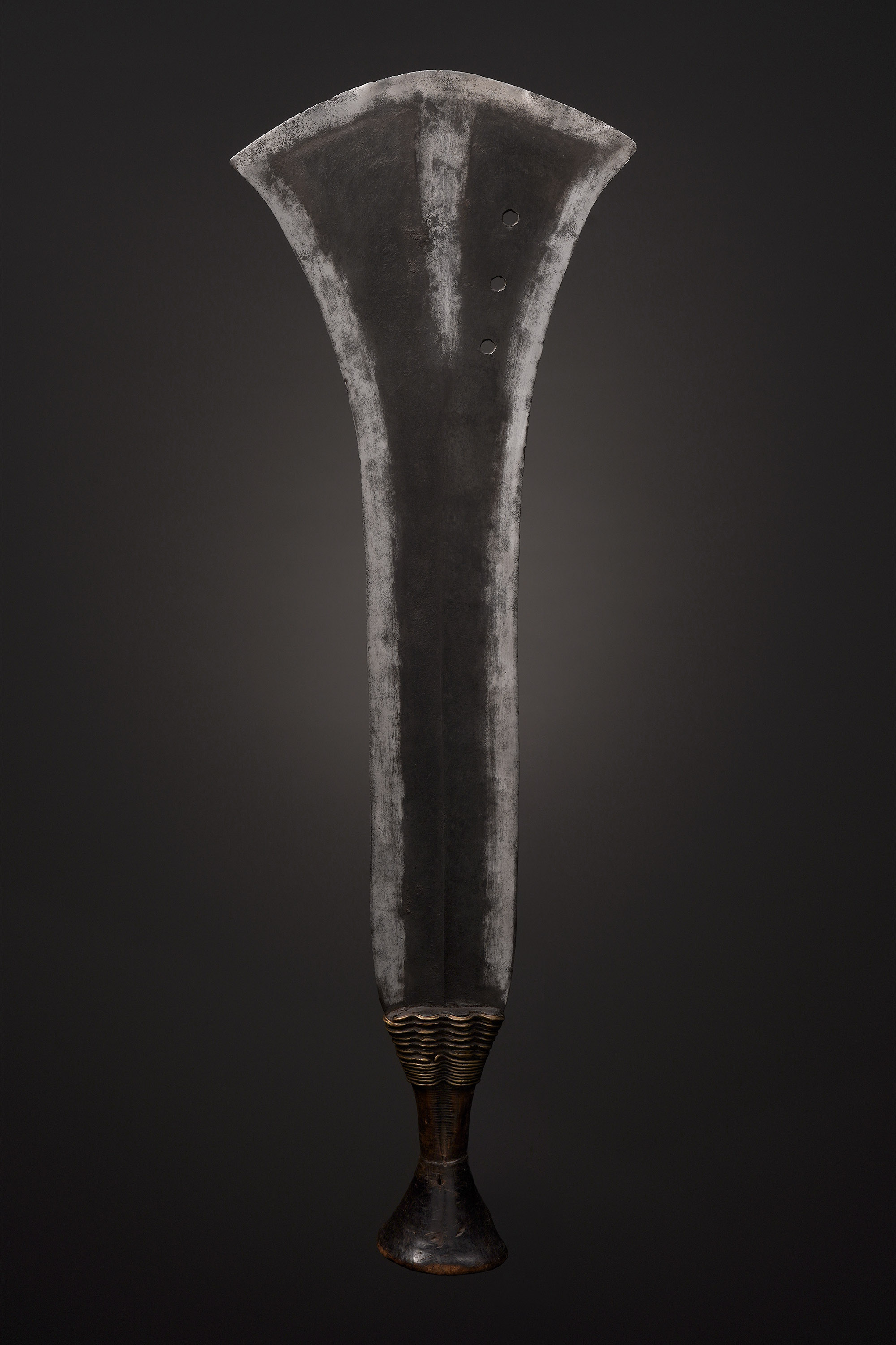 Most commonly referred to as a 'court sword,' this knife was generally associated with assigning a certain prestige upon its owner. The fortunate keeper never missed an occasion to exhibit theirs - partially to demonstrate their wealth and partially to impose themselves on their fellow countrymen. This way, these weapons quickly became parade objects and even the symbols of dignity or emblems of social position (Maes, J. & Lavachery, H. L'art nègre, a l'exposition du Palais des Beaux-Arts , 1930).