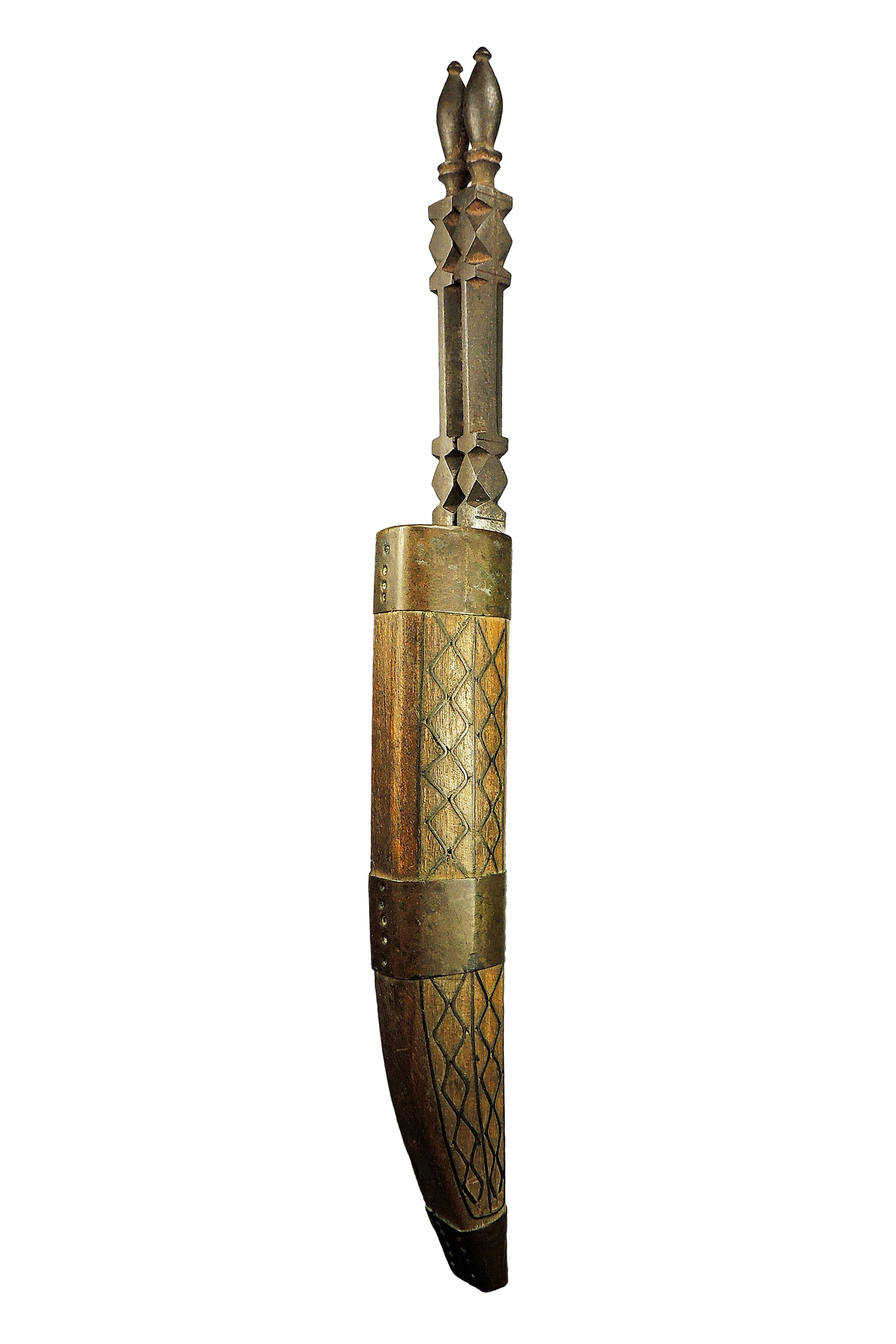 Eric Claude describes the ways in which these razors are manufactured with the same techniques and design as Algerian Flissa swords: "the majority use the same decorations as the Flissa with some variation, and the same flat-spined blade, tapering towards the tip is also identical to Flissa swords. These knives consist of a mono-metallic mount with the octagonal hilt, the ferrule and the blade, all made of a single piece of forged steel. Some of these are called 'Kabyle razors' and are often seen in pairs in the same sheath" (The Small Catalog of Moroccan and Algerian Edged Weapons, 2020).