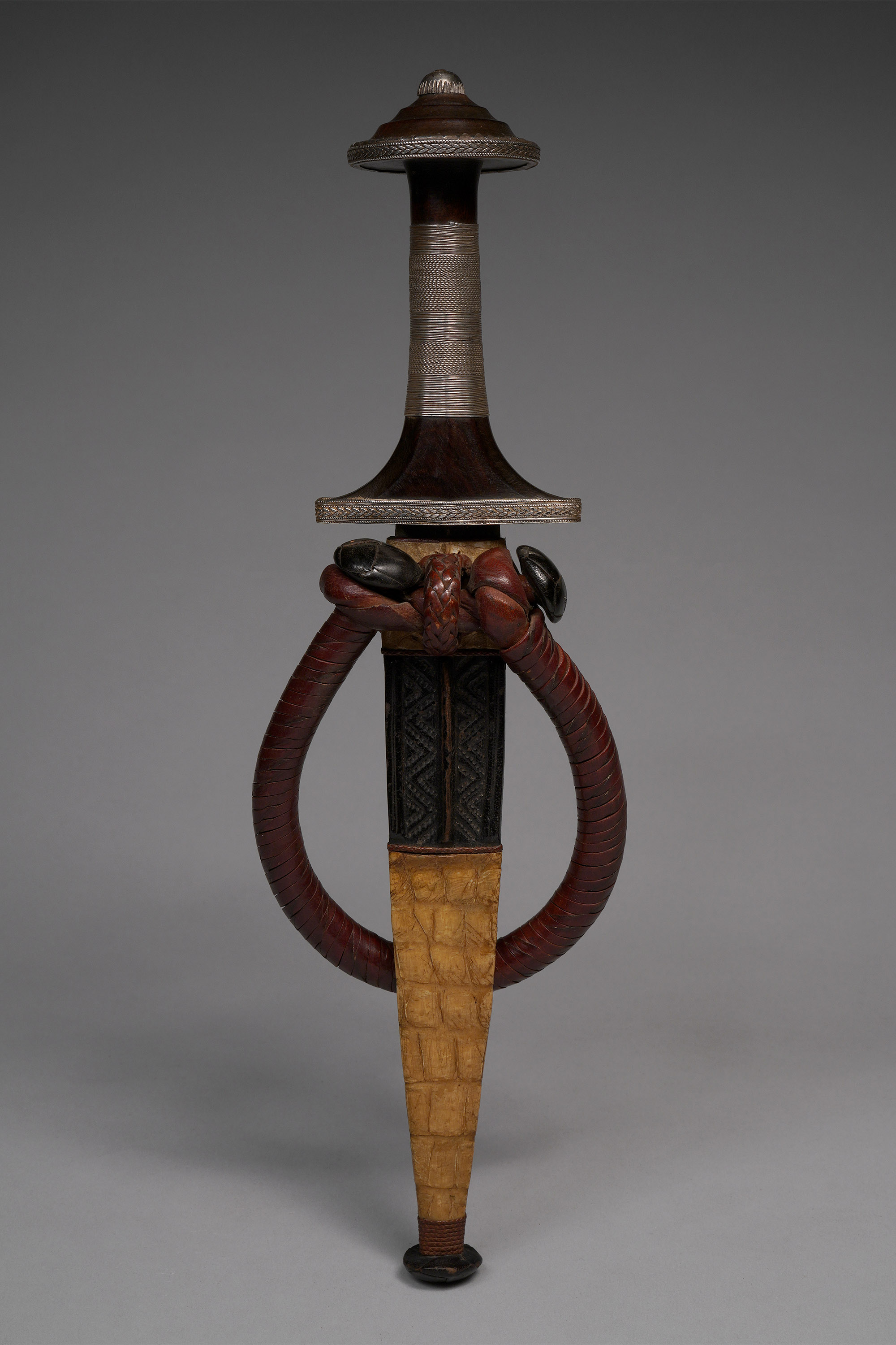 Iron, wood, leather, crocodile, silver