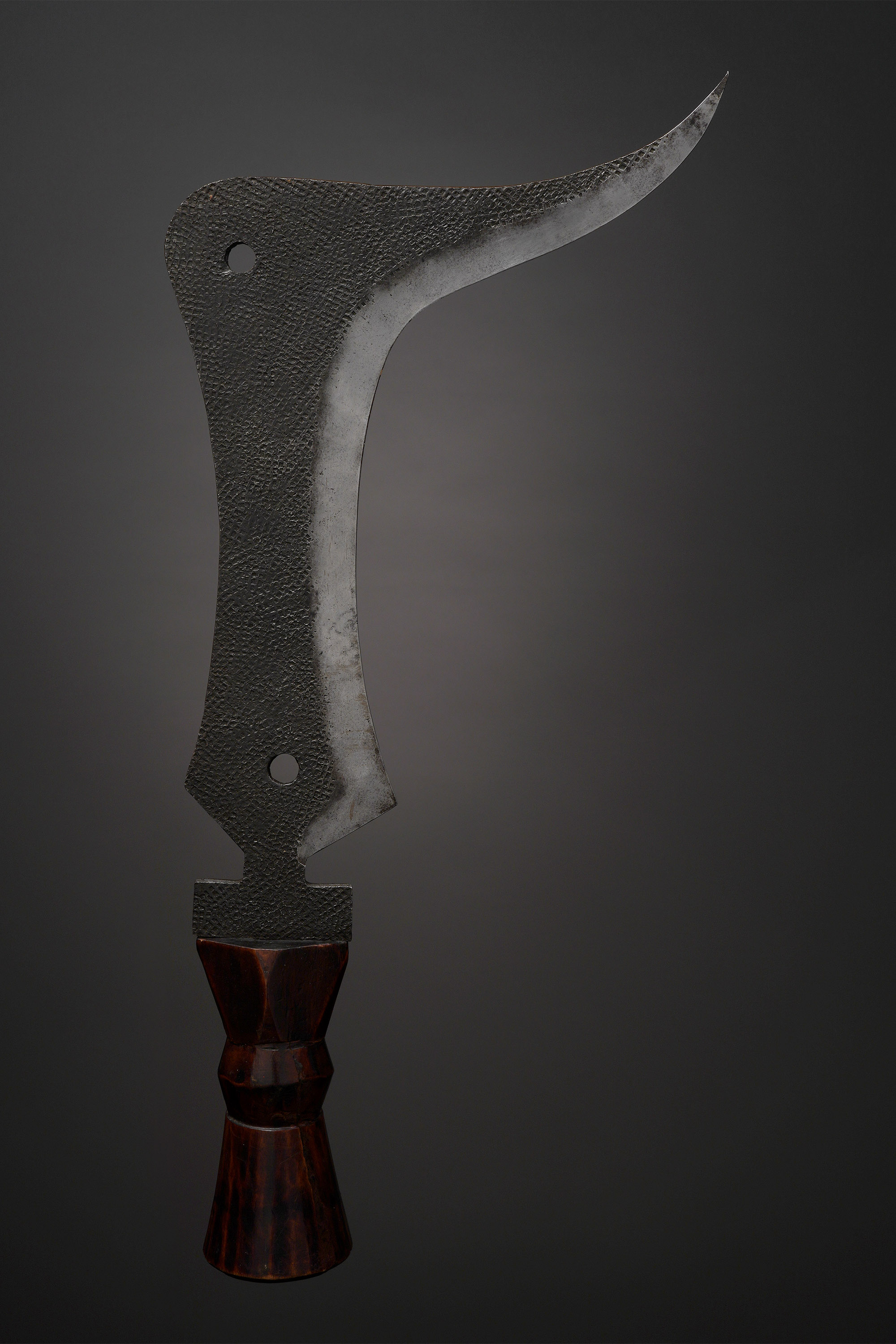 The knives that the Topoke (Eso) and Mbole carried during rituals had very unusual shapes, and no two examples seem to be the same. Berardi describes them as “prestige scepters,” (2004). Unfortunately, very little additional information is known about this type (Zirngibl & Kubetz, Panga Na Visu, 2009).