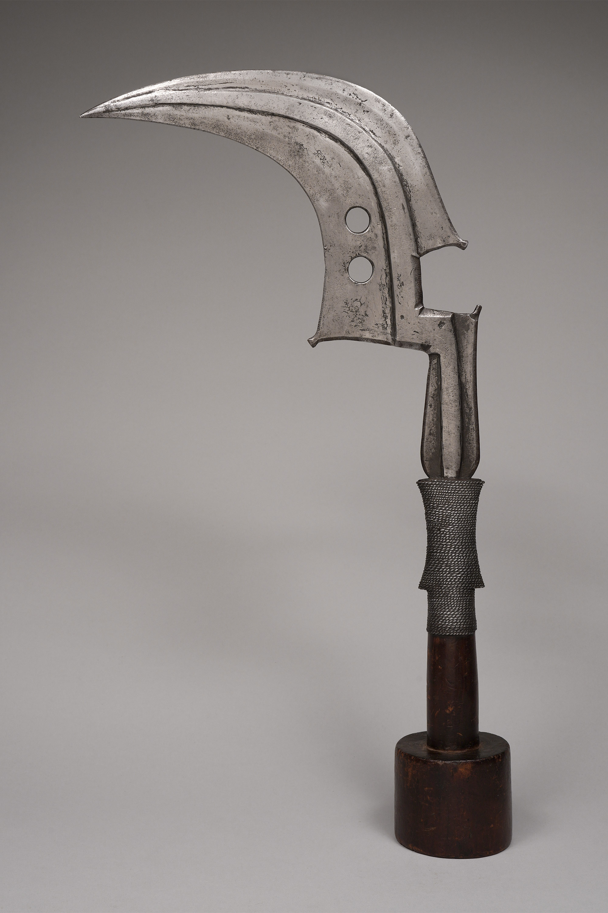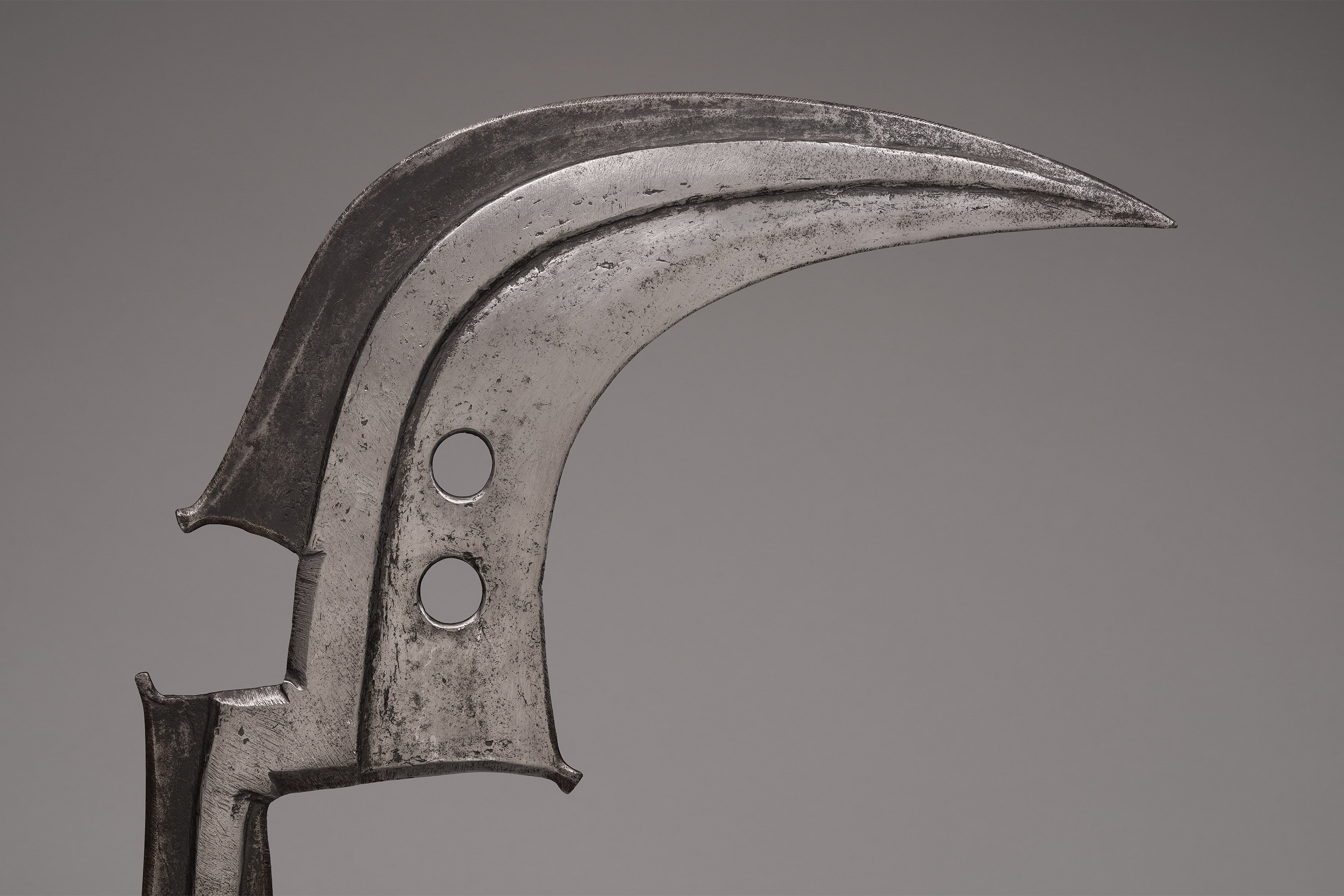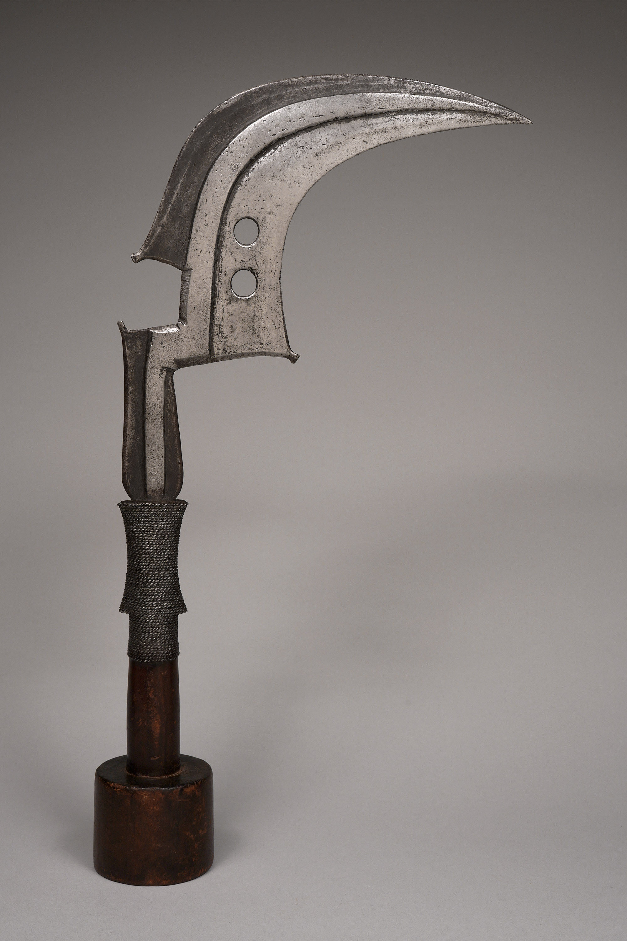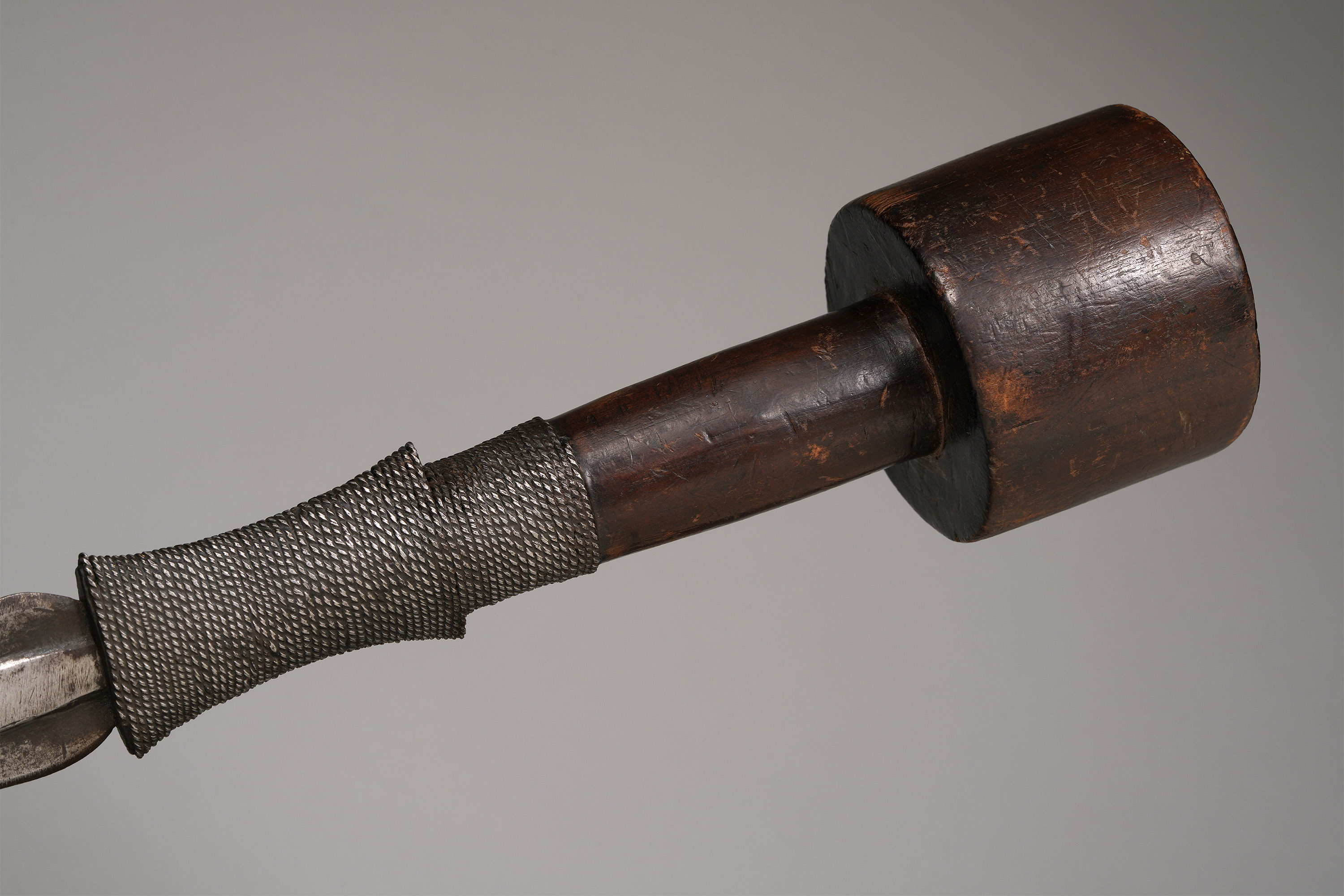 The Nagata / Nagala sickle knife was worn by men during visits, palavers, and ceremonious social gatherings. Its fancy details and finish gave the bearer a certain distinction and enhanced his reputation and wealth. While it was primarily used for show purposes only, it was also occasionally used to cut branches or for farm work (Schildkrout & Keim, African Reflections: Art From Northeastern Zaire, 1990).