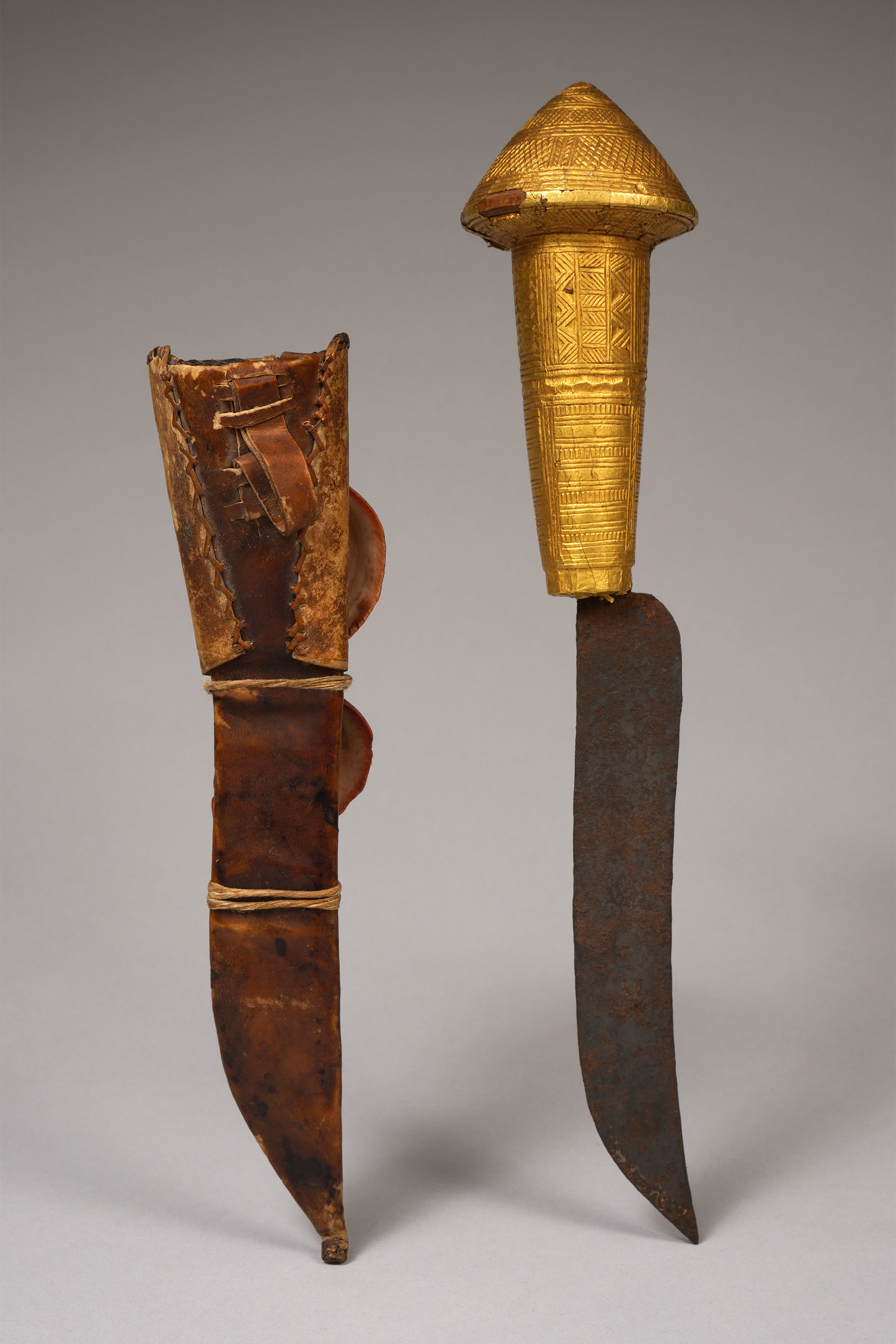 Among the Baule of Côte d'Ivoire (Ivory Coast), gold-covered wooden figures, fly whisk handles, sword hilts, knife handles, linguist staff finials, combs, and other objects are prestige items owned by chiefs and individuals of high status. They are part of the family's inheritance and are linked to ancestral force and the soul of the family. Gold-covered objects are placed on display for funerals, for certain masquerade performances, and for ceremonies associated with leadership (Ceremonial Knife, Smithsonian: National Museum of African Art, n.d.).
