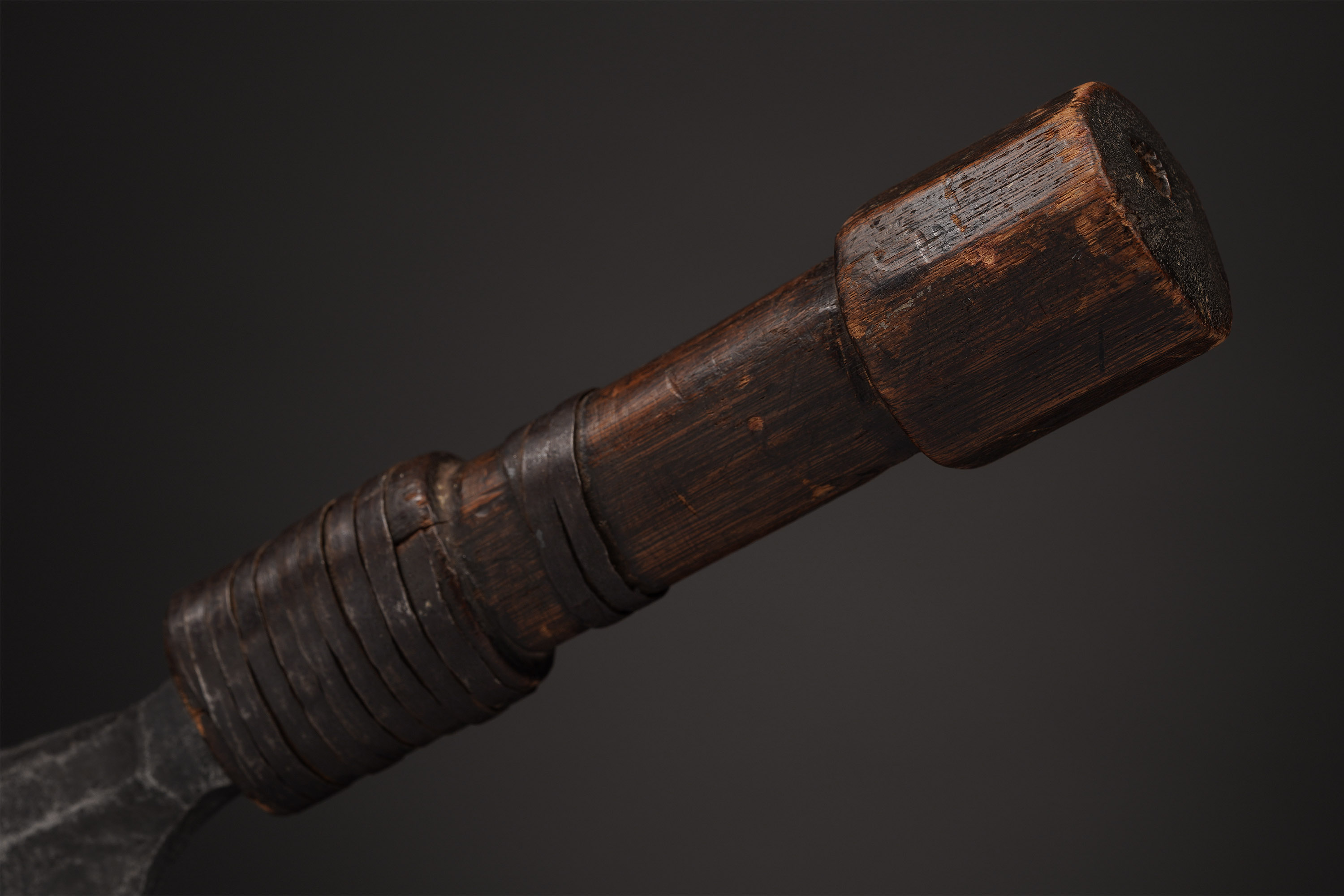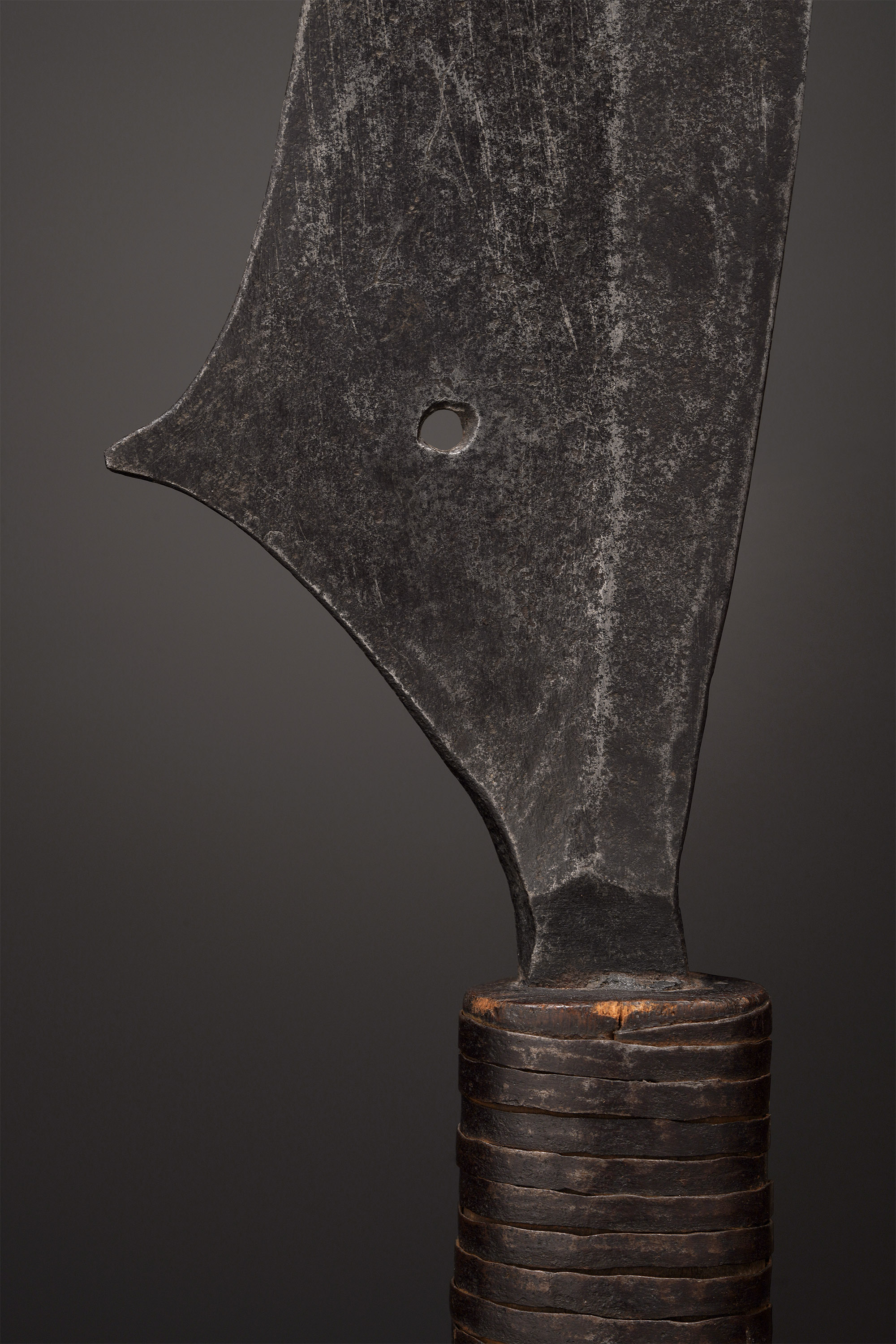 This piece wears some important yet subtle differences from Mangbetu blades, which might indicate its origin from the Mongelima or Meje (Elsen, Tribal Arms Monographs Vol. 1 Nº3 , 1997).
