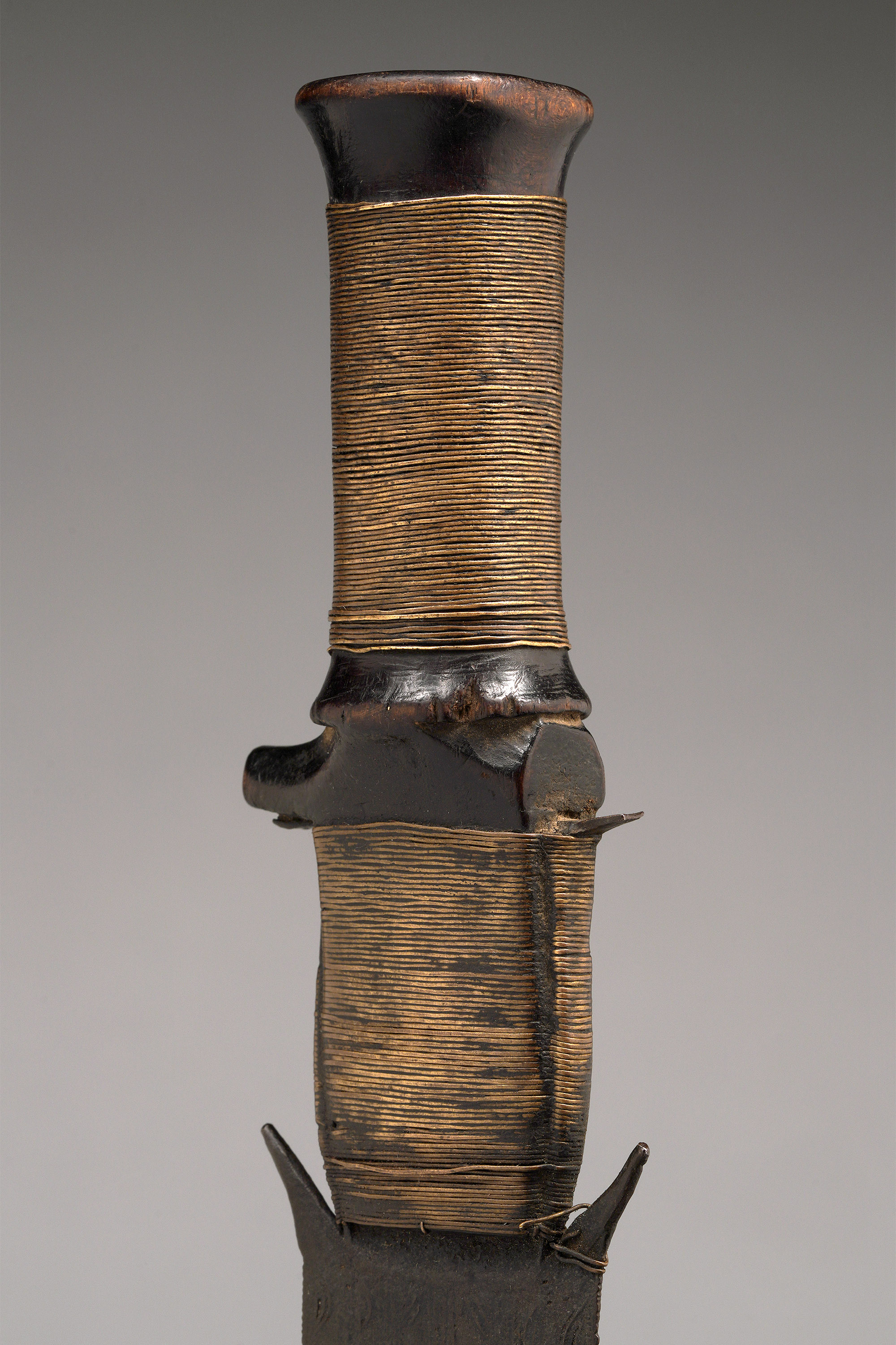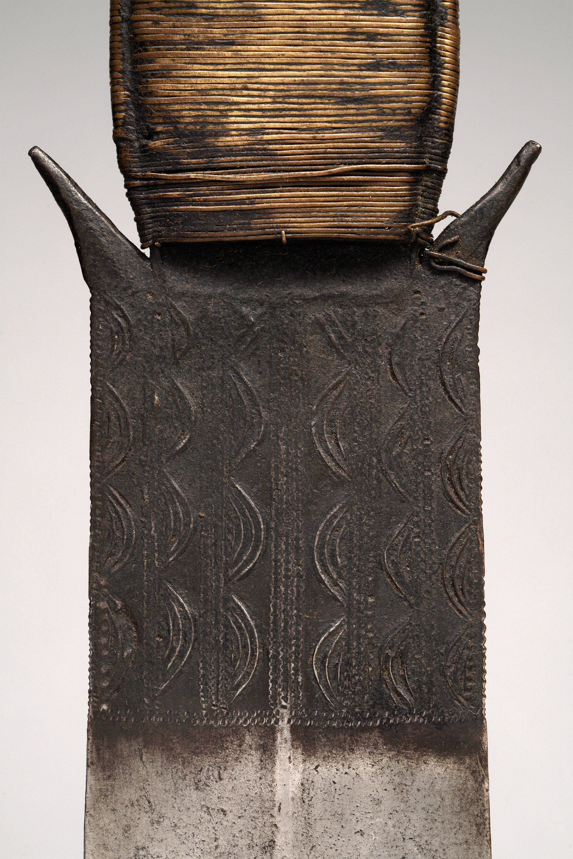 Examples with this type of embossed metal sheath are quite rare. Two of them (in my archive) were published in Felix & GE (Eds.), Fatal Beauty: Traditional Weapons from Central Africa, 2009, [Orange edition] fig. 59b.