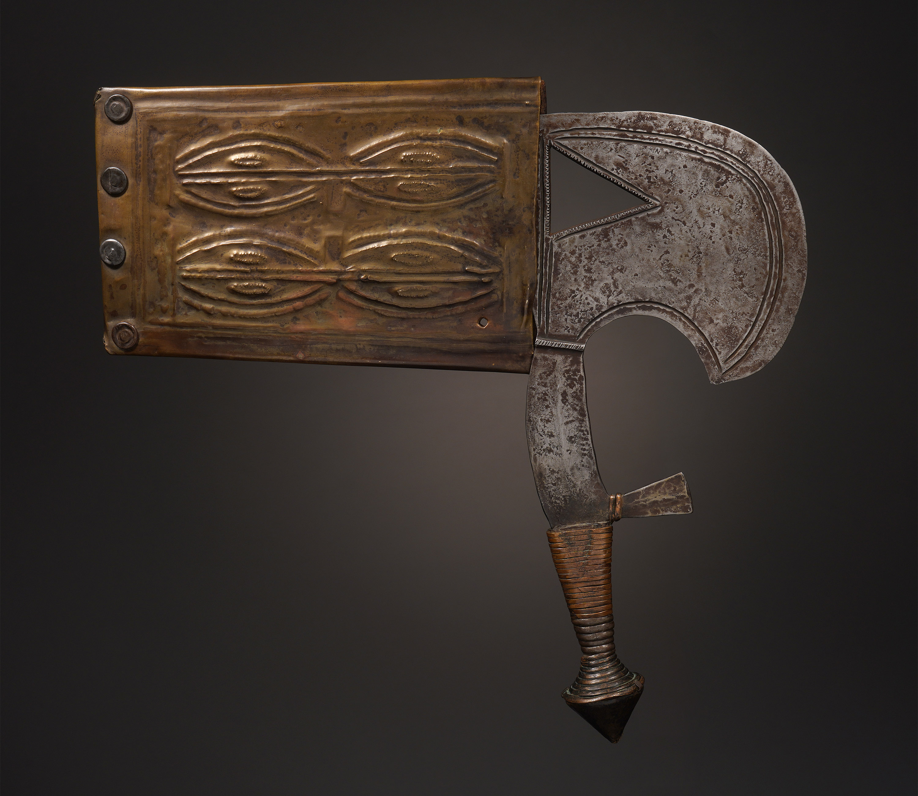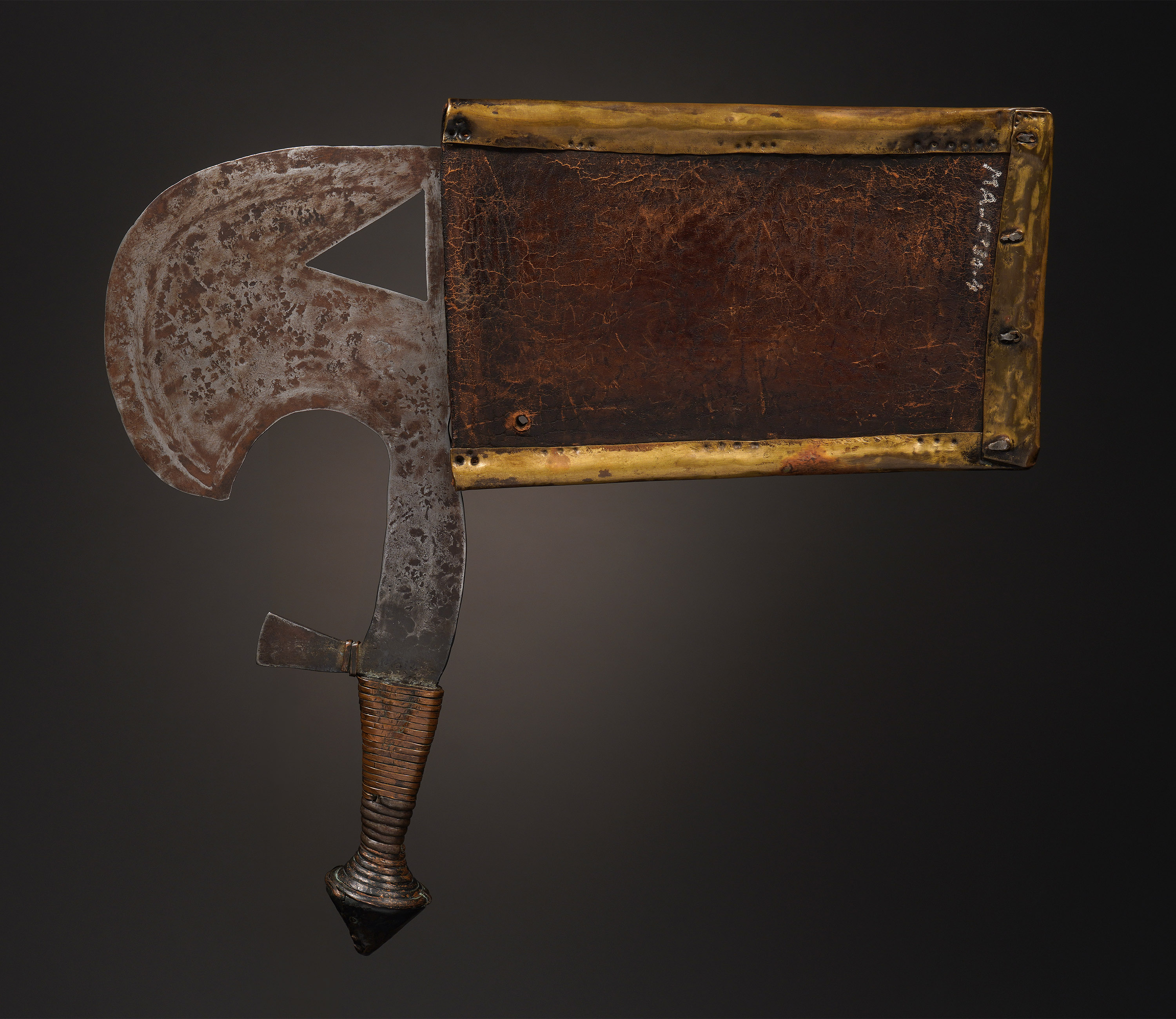 Iron, brass, leather, wood, copper