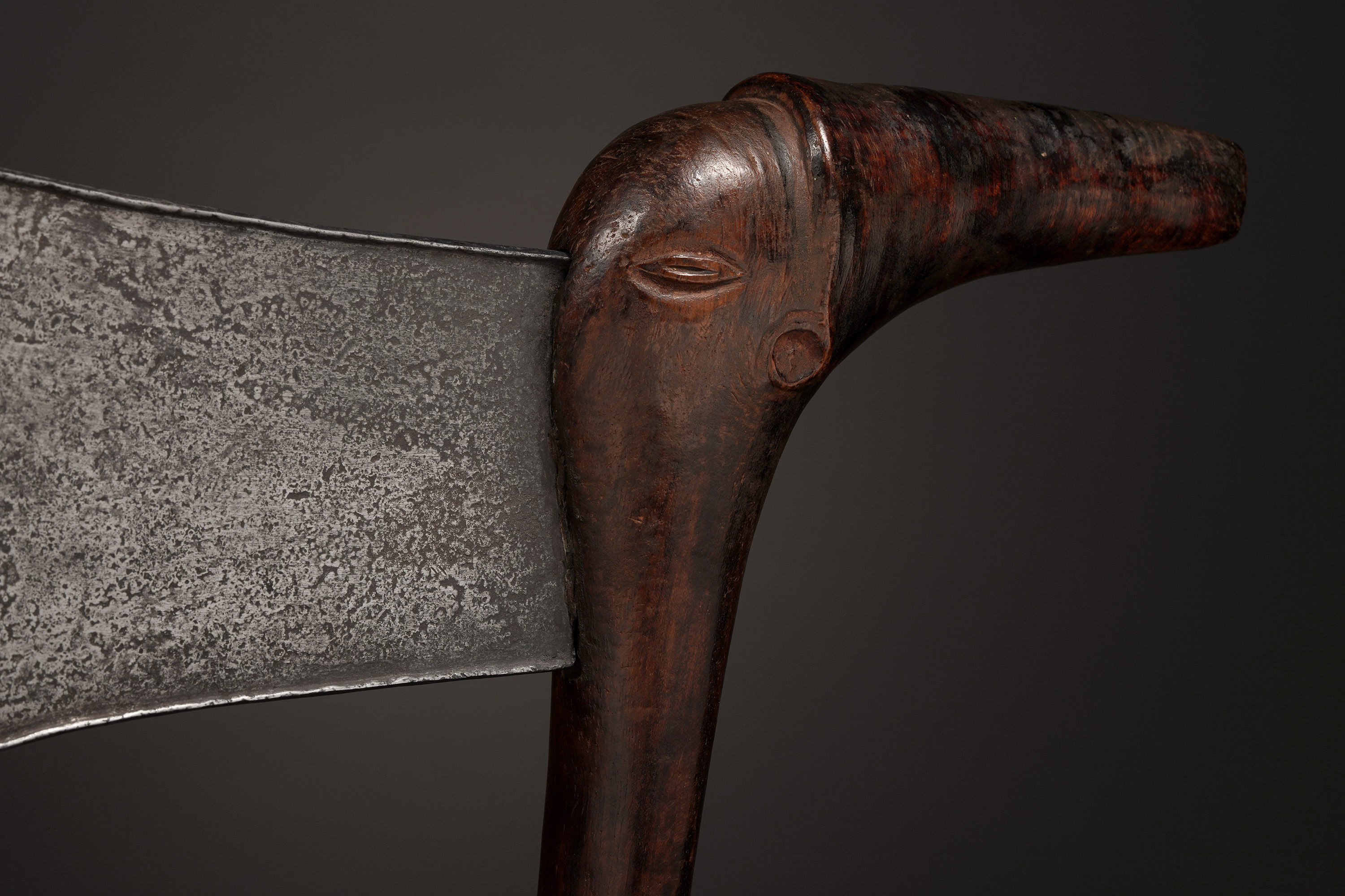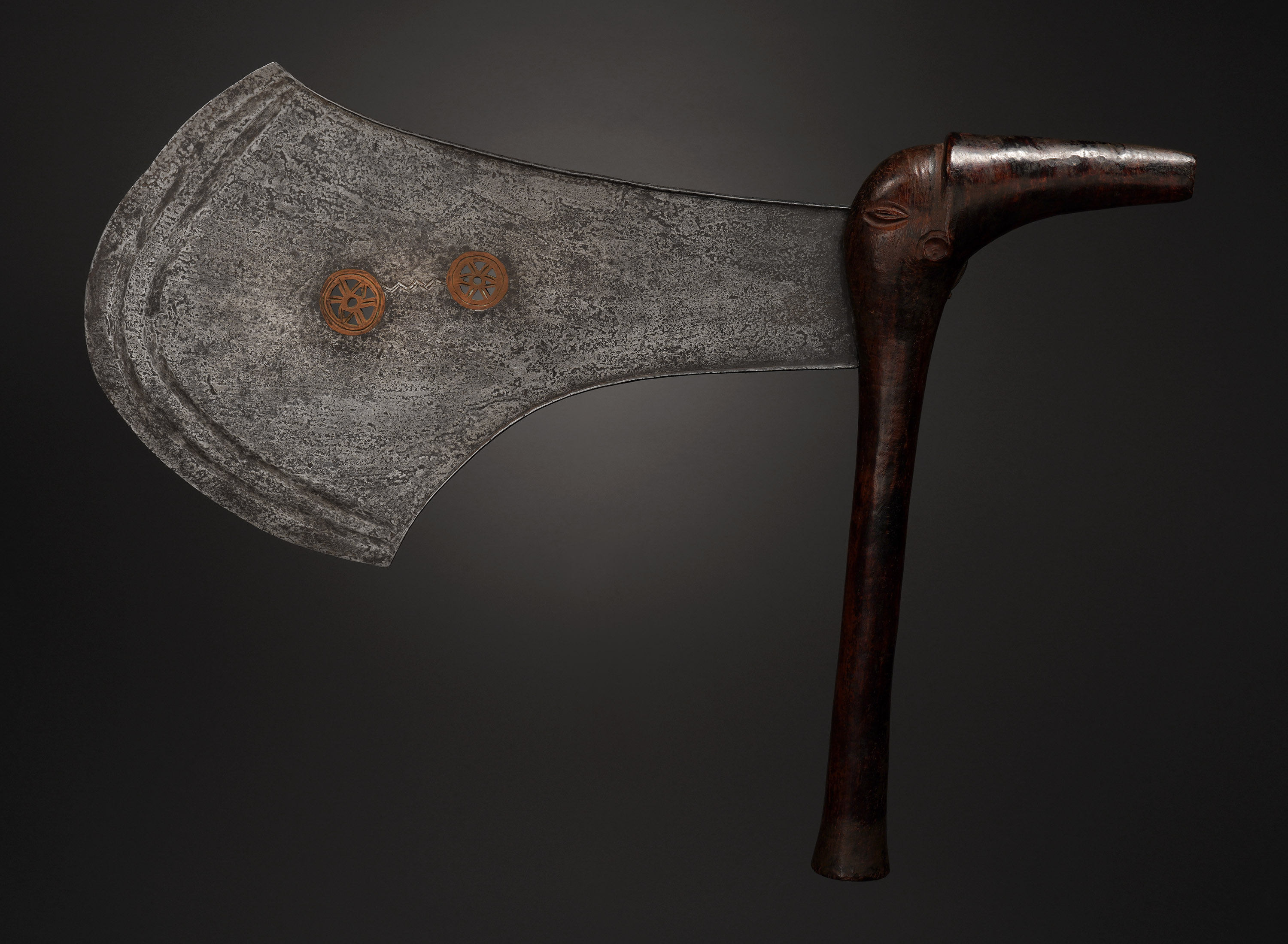 Inauthentic Ceremonial Prestige Axe Malléla Songye-Sanga, D.R. Congo Iron, wood, copper Provenance dates back to