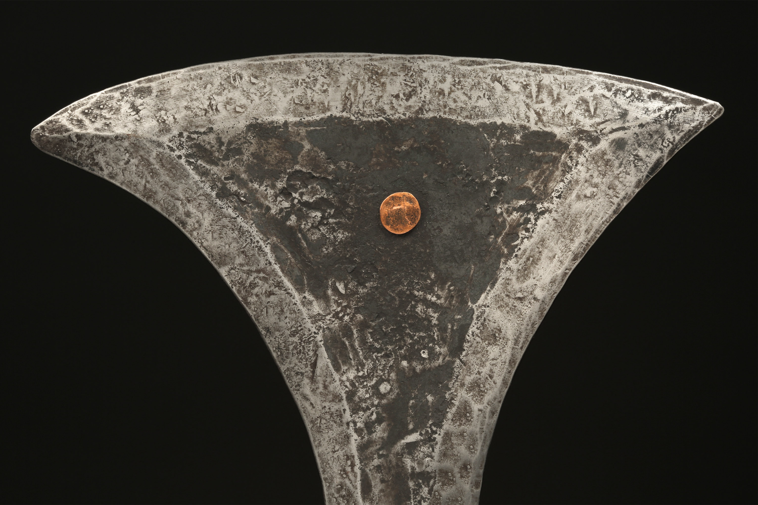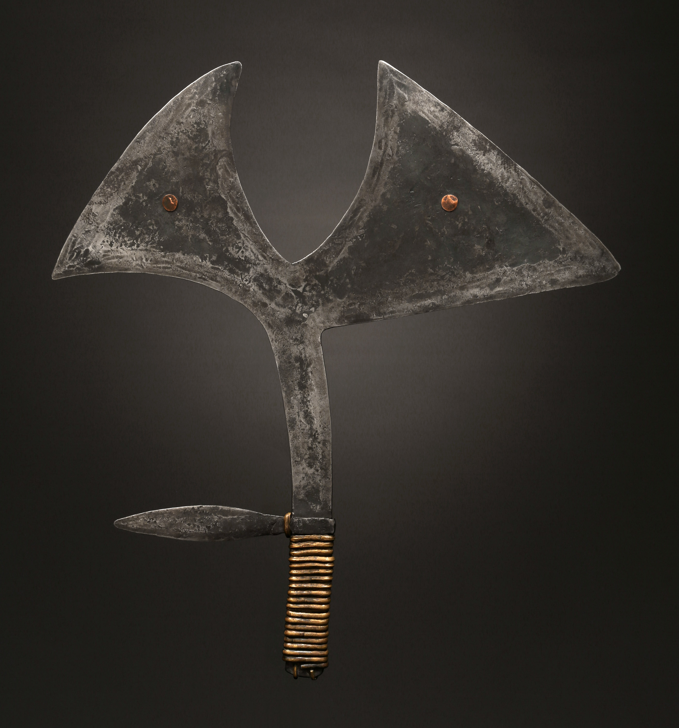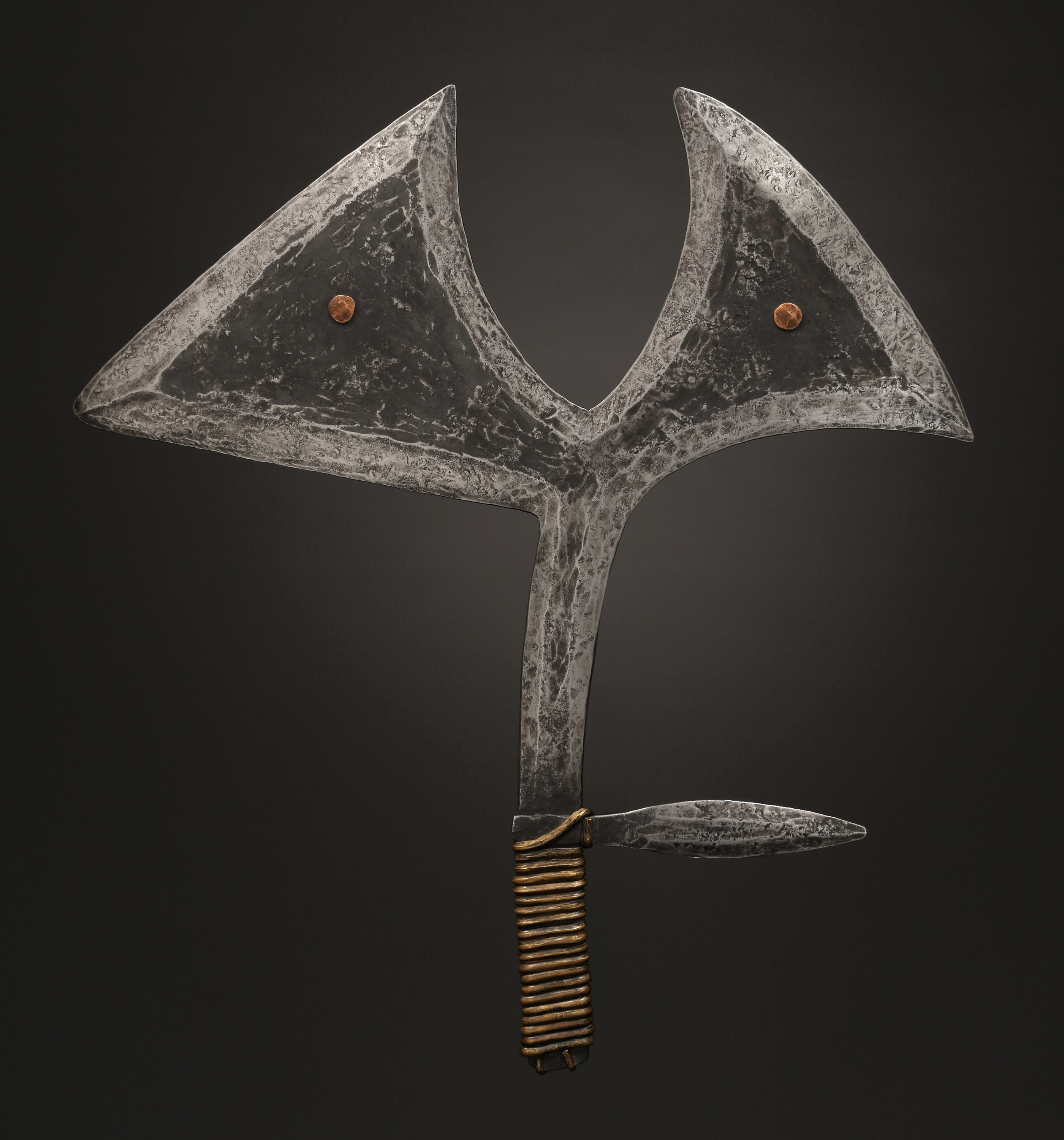 Inauthentic Throwing Knife In the Style of the Yangere / Southern Gbaya / Makaa, Central African Republic Iron, brass, copper Provenance dates back to 2004