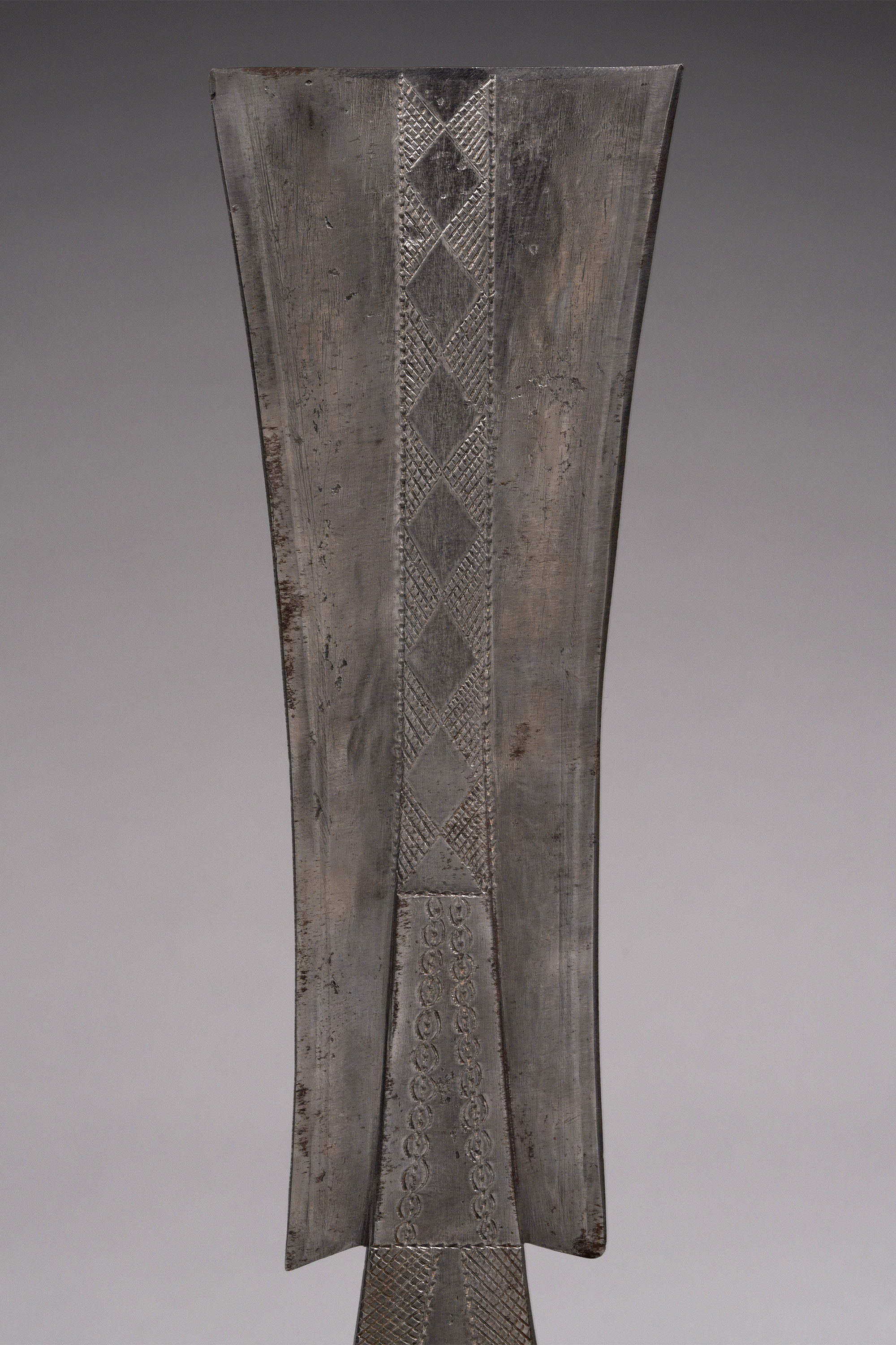 —The blade is heavily incised; much more so than traditional examples