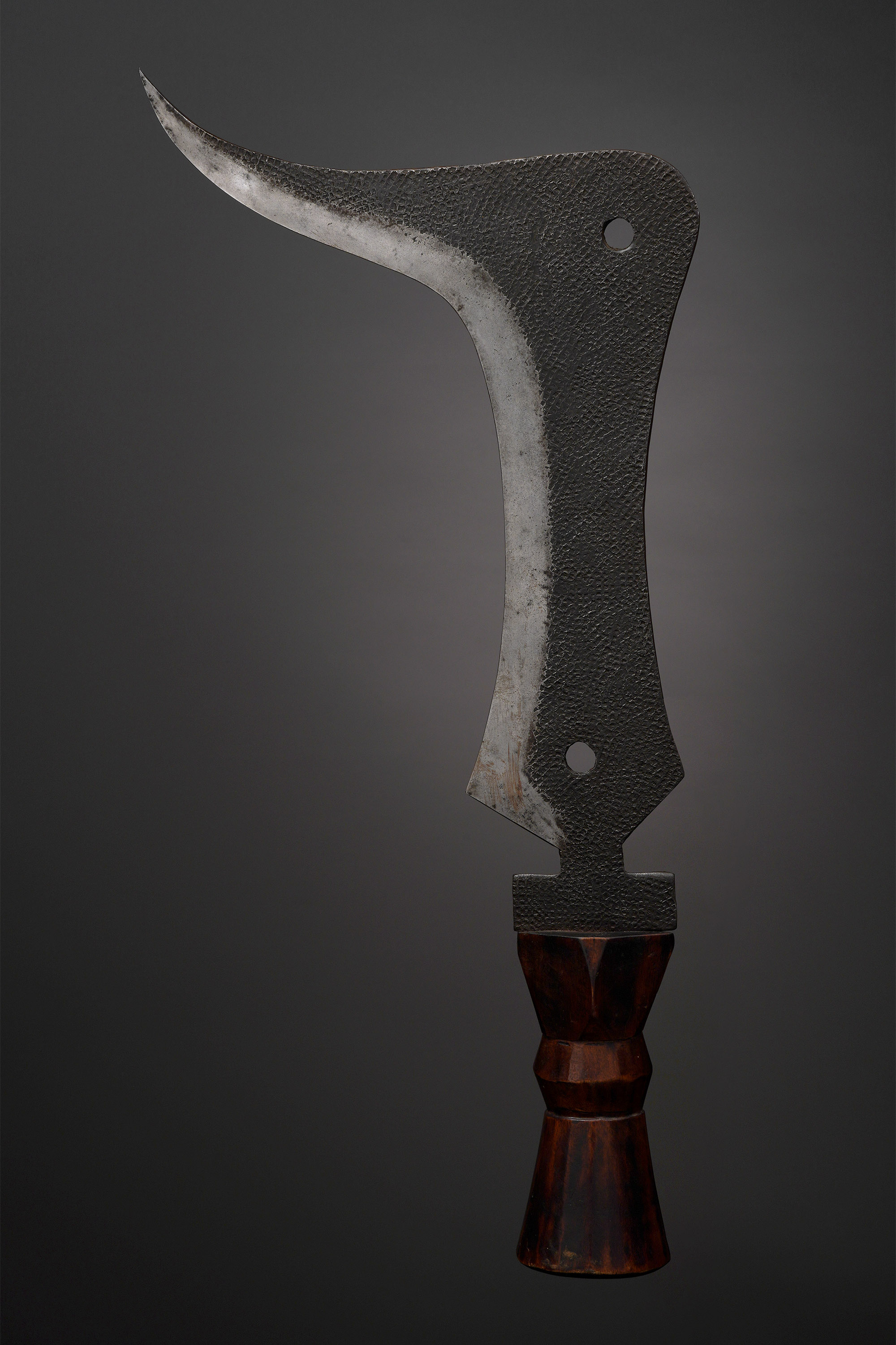 The knives that the Topoke (Eso) and Mbole carried during rituals had very unusual shapes, and no two examples seem to be the same. Berardi describes them as “prestige scepters,” (2004). Unfortunately, very little additional information is known about this type (Zirngibl & Kubetz, Panga Na Visu, 2009).