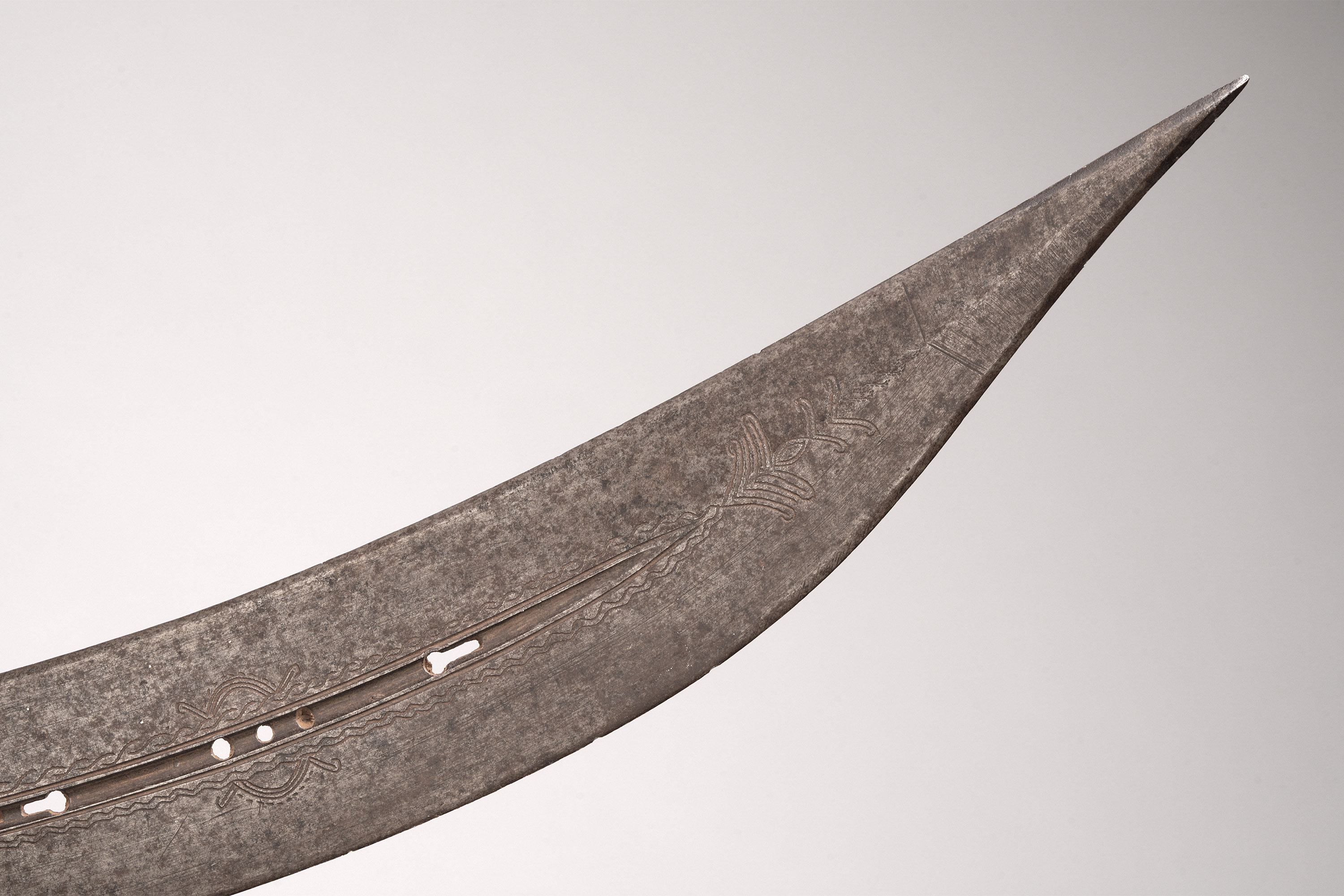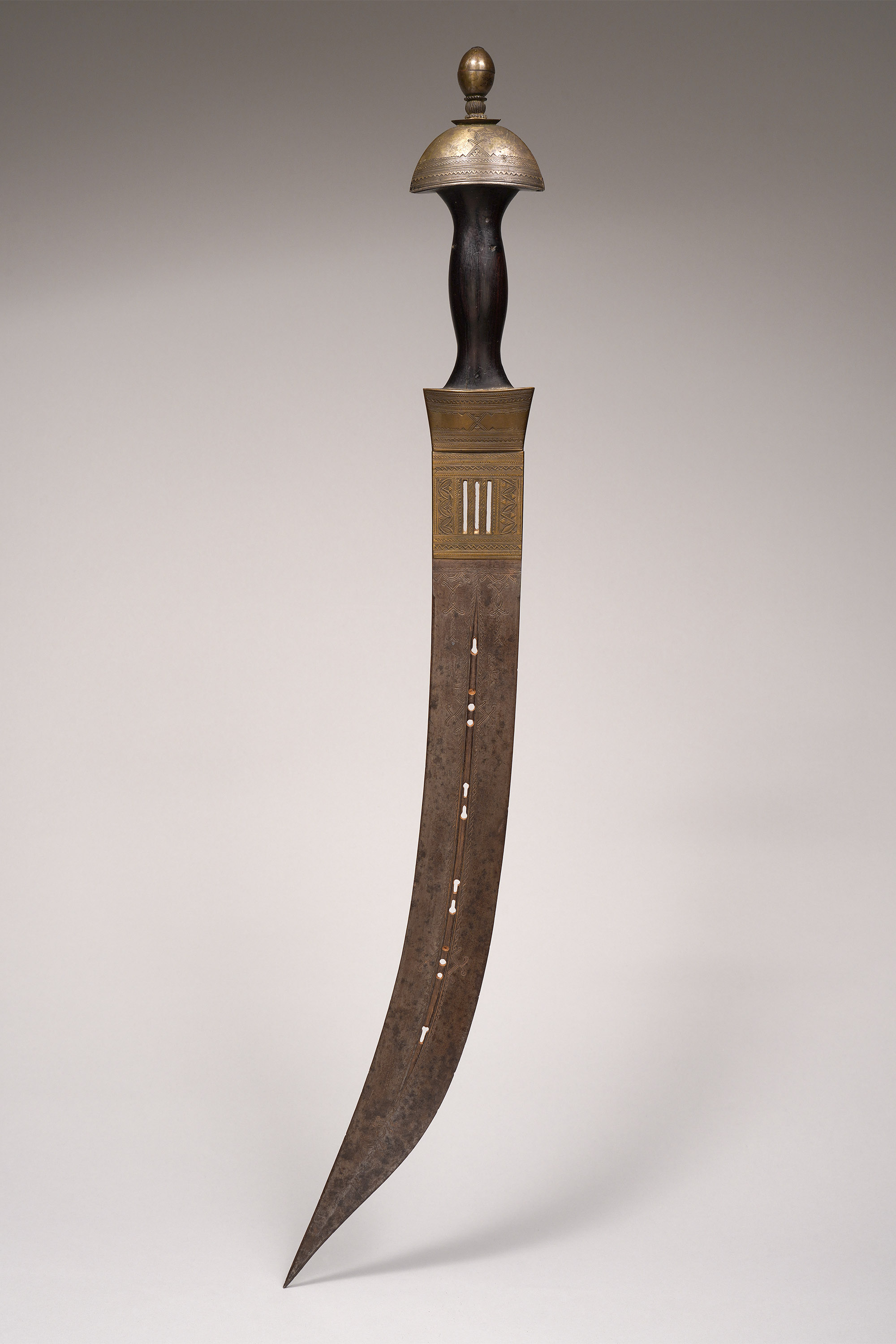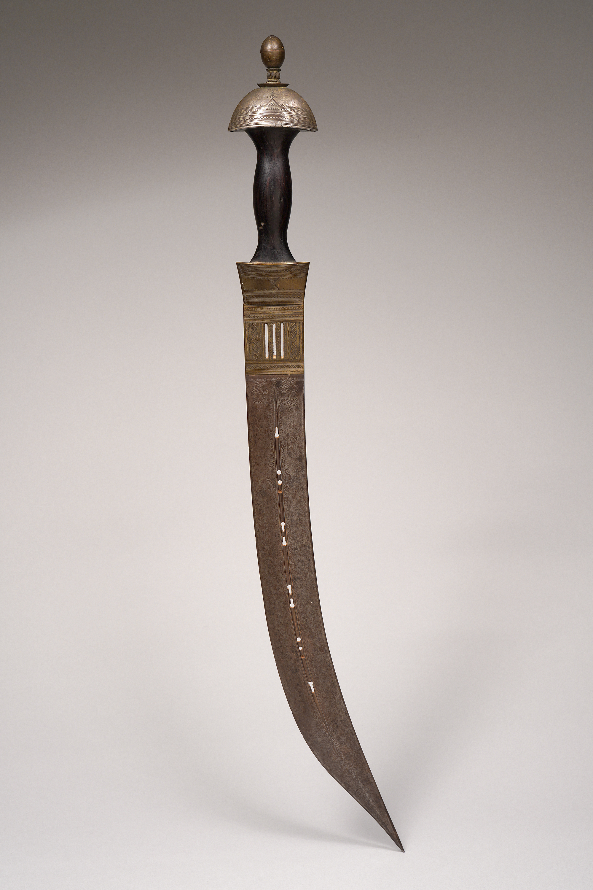 Elaborately decorated Moorish curved swords of this type are typically dated to the 19th or early 20th century in museum collections.