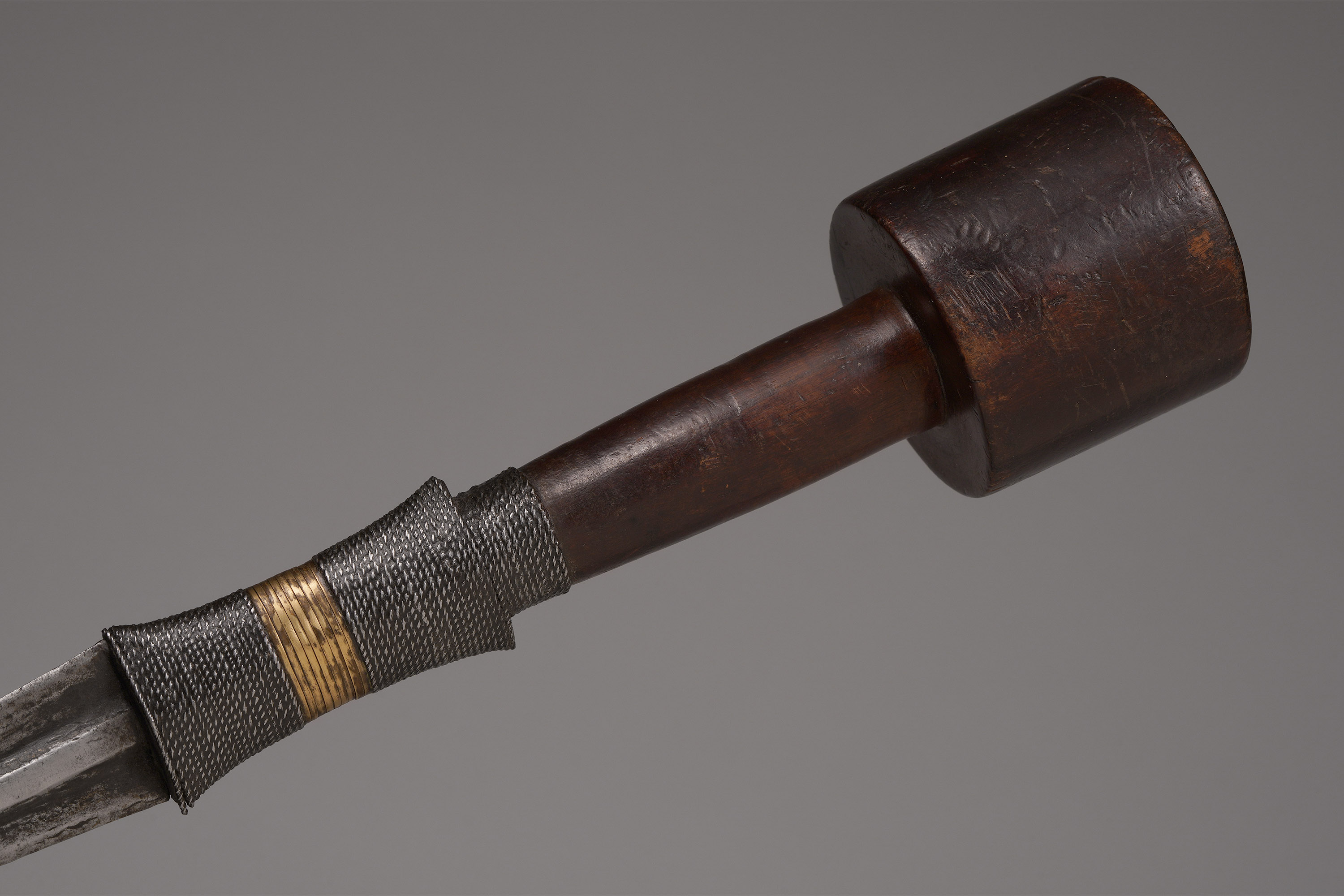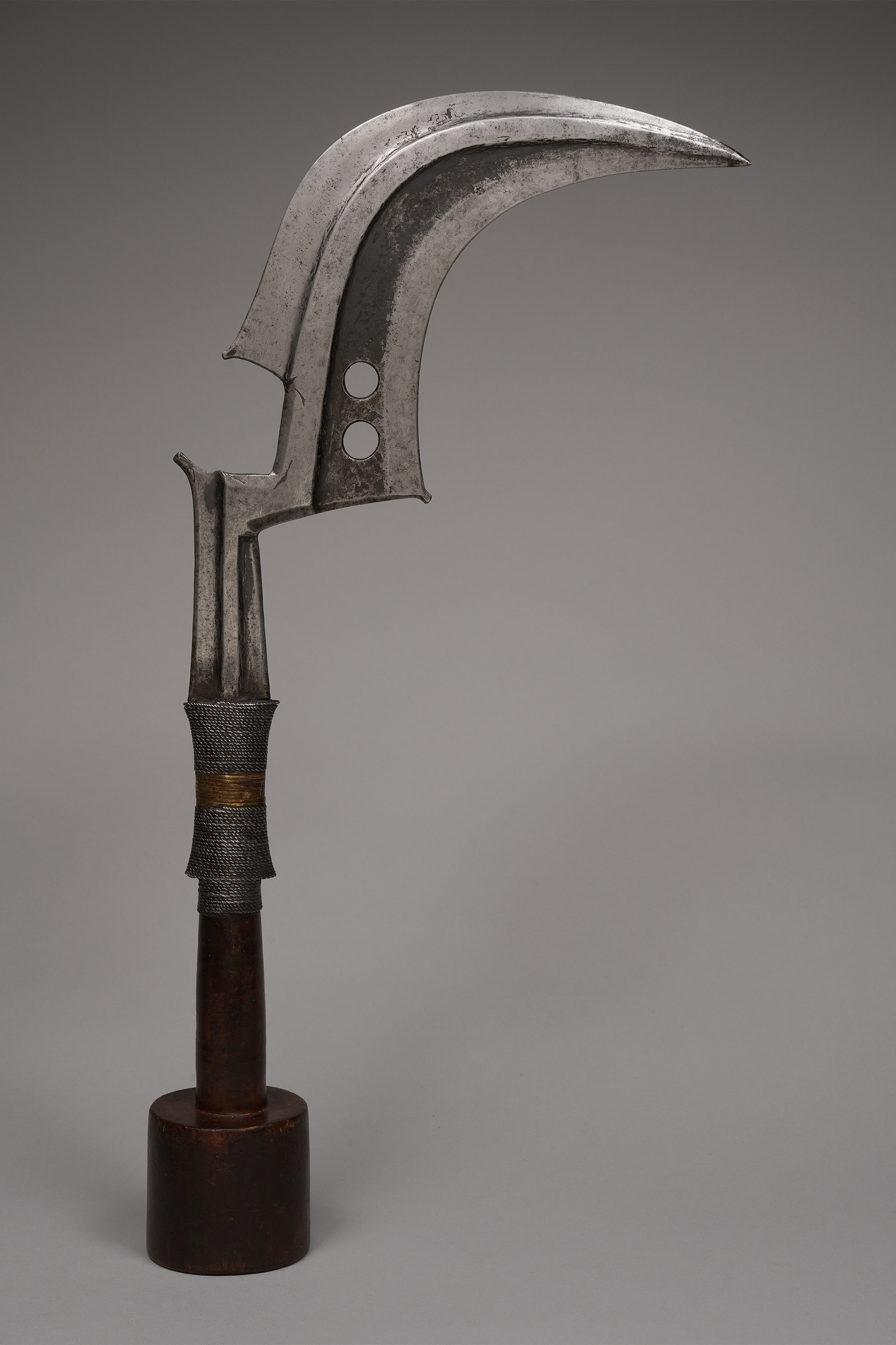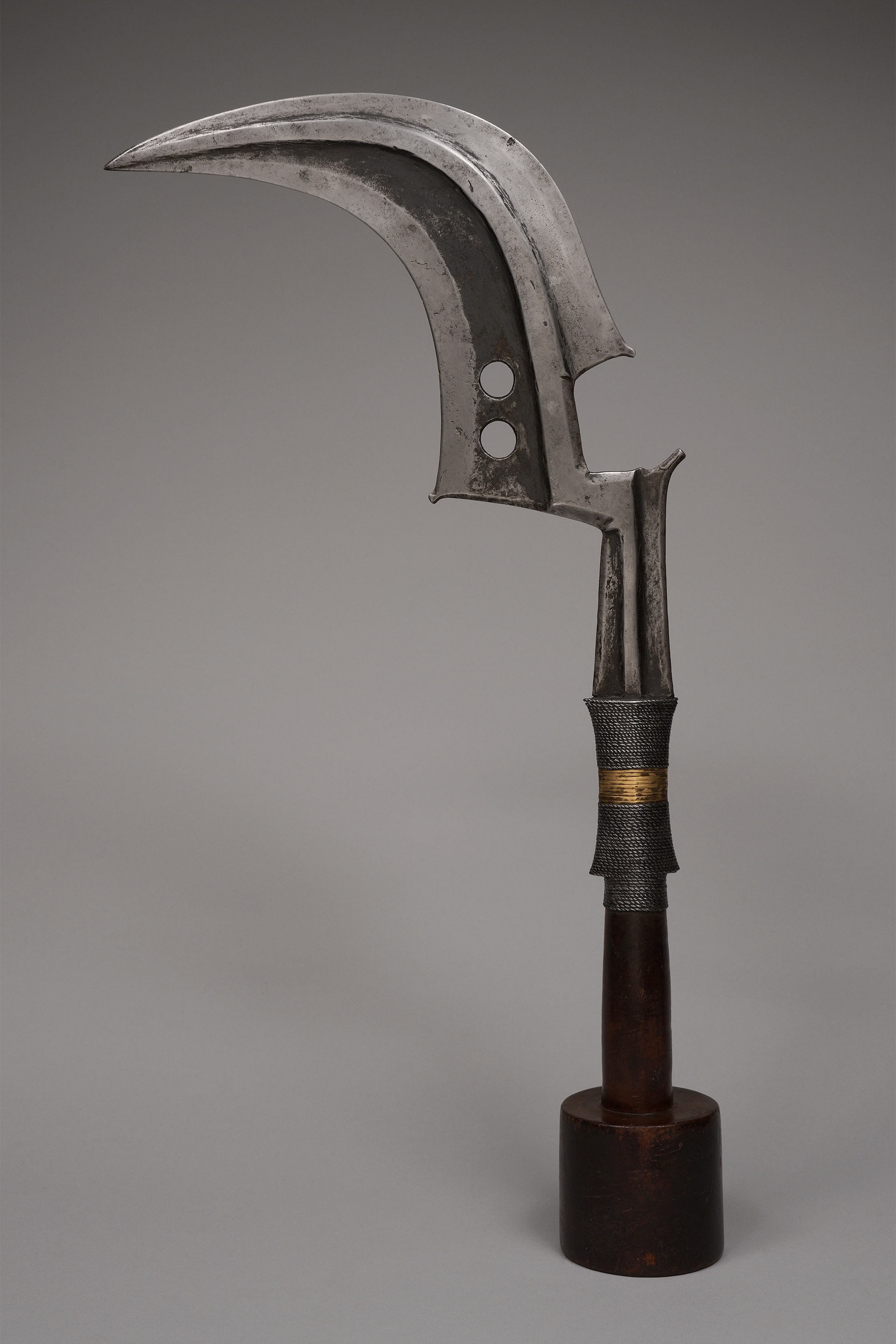 The Nagata / Nagala sickle knife was worn by men during visits, palavers, and ceremonious social gatherings. Its fancy details and finish gave the bearer a certain distinction and enhanced his reputation and wealth. While it was primarily used for show purposes only, it was also occasionally used to cut branches or for farm work (Schildkrout & Keim, African Reflections: Art From Northeastern Zaire, 1990).
