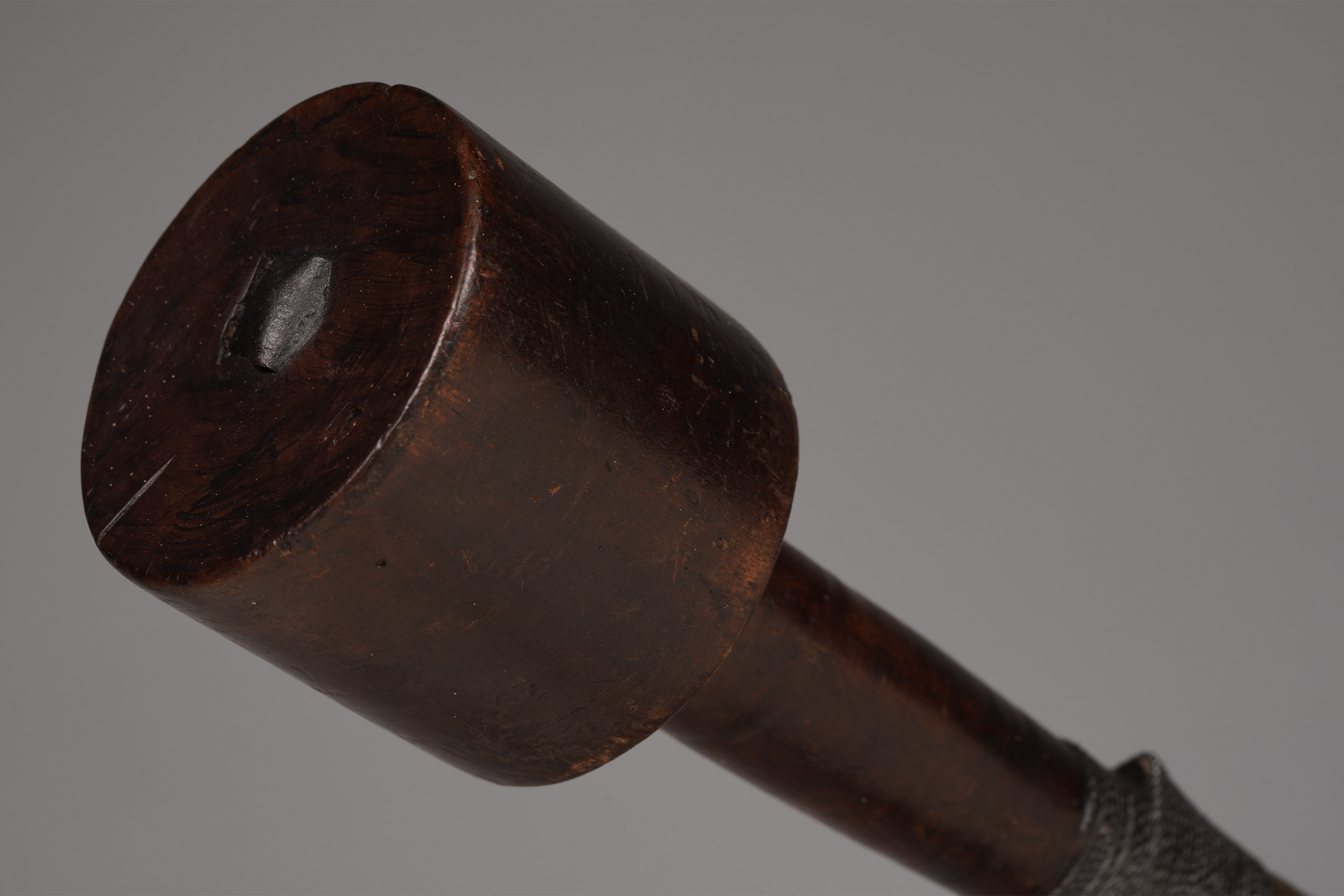 The transposition of the central axis, as seen on this example, is both a rare design element and the most desirable characteristic of Mangbetu blades.
