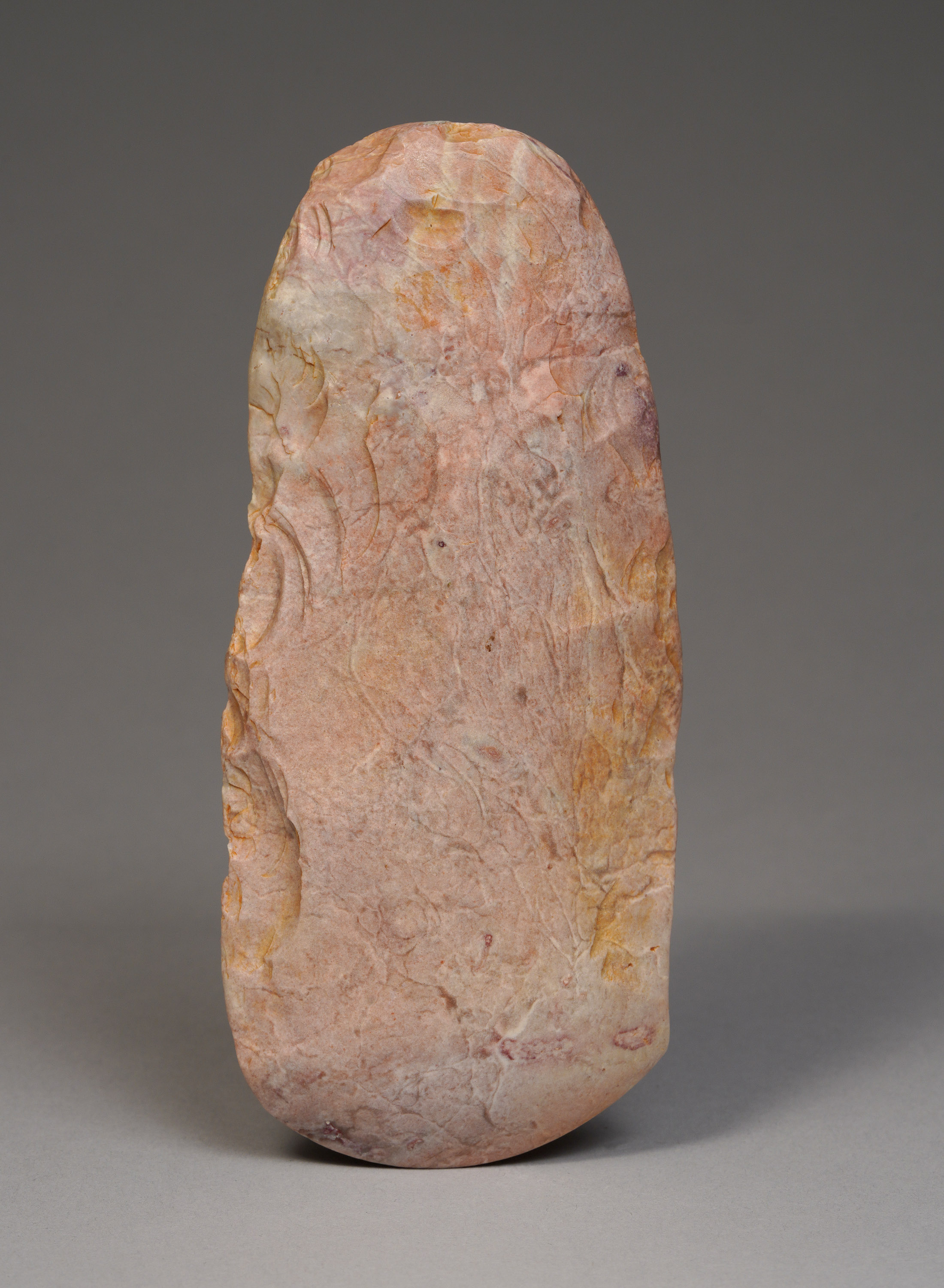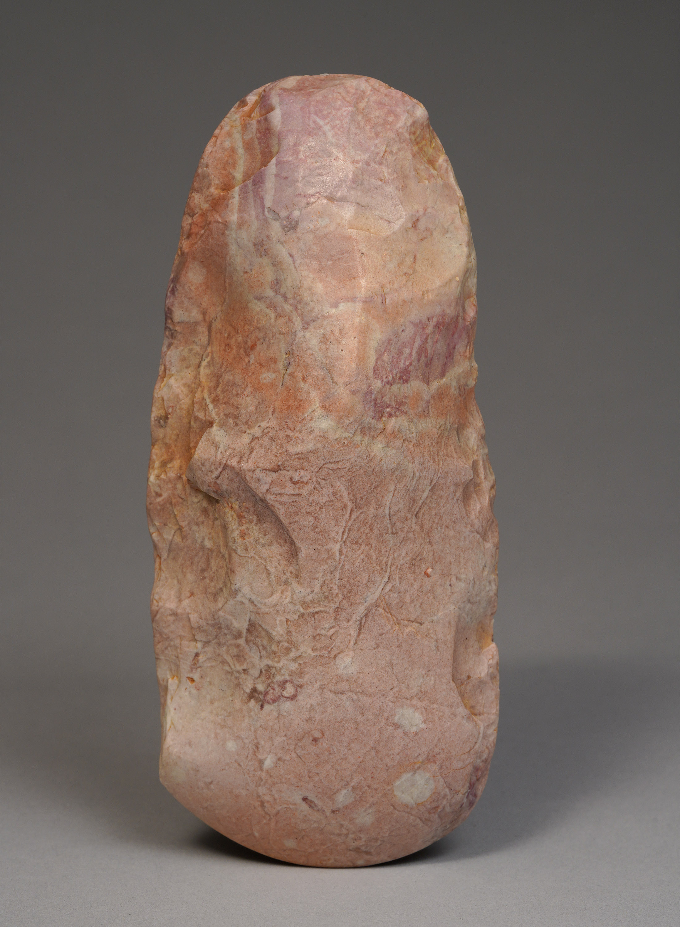 Axe blades such as this were made out of exceptionally high-quality flintstone / agate and belong to the Tenerean neolithic complex in West Africa. They are around 6000 years old. They were produced by specialized flint knappers who also made arrowheads and other tools. Most of them were found in Niger, but there were ateliers in (modern-day) neighboring countries as well. The axe blades had different shapes based on their function / purpose, and when in use they were sharpened along the outer edge. Gradually the axe blades became shorter and were resharpened until they were too small to work with. Most of the axe blades found are in the first stage, simply knapped and ‘fresh’ (found in close proximity to the ateliers). When used and re-sharpened they were dispersed around a wide region, and are much more difficult to find today (Pers. communication, Michel Van Den Dries, 2025).