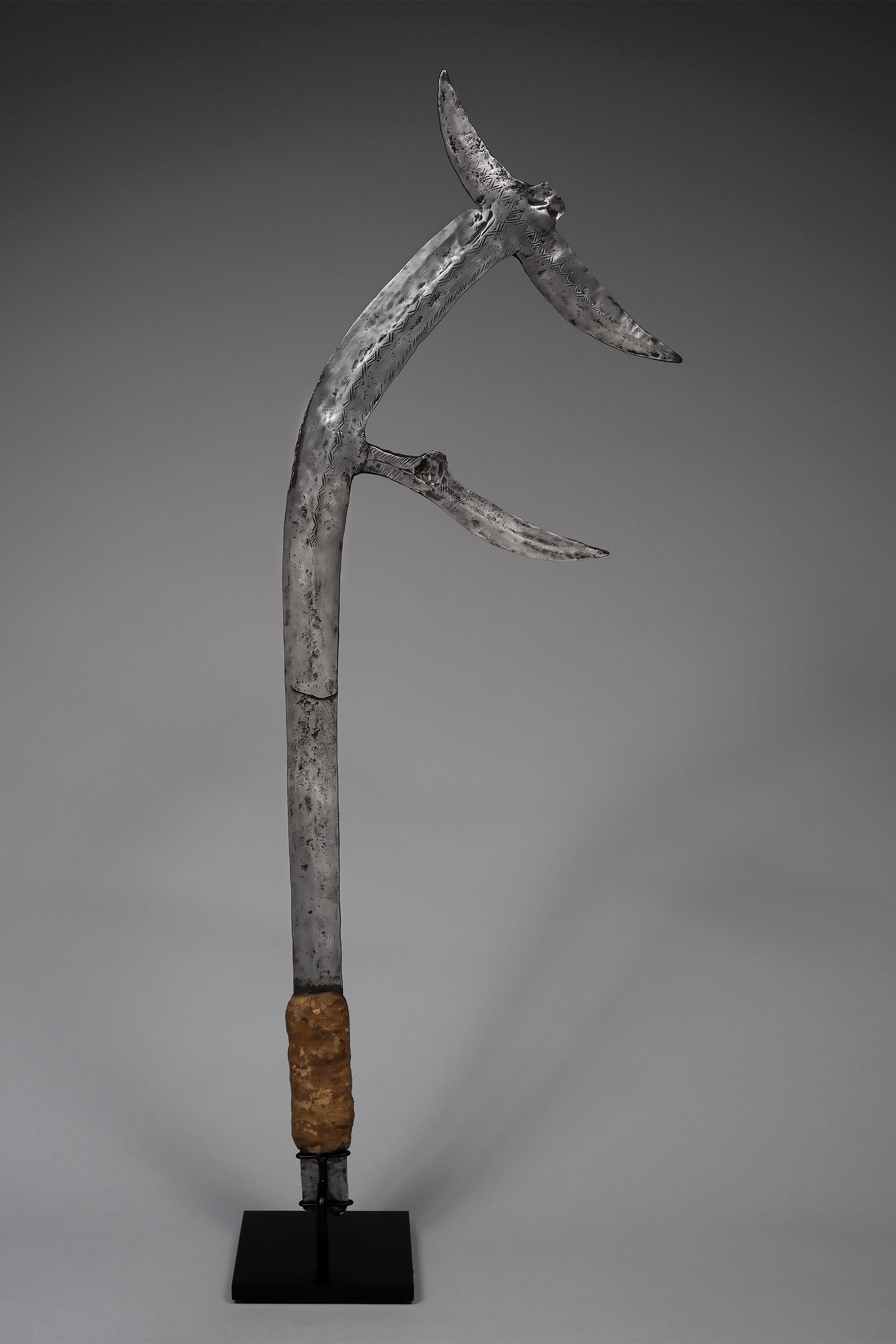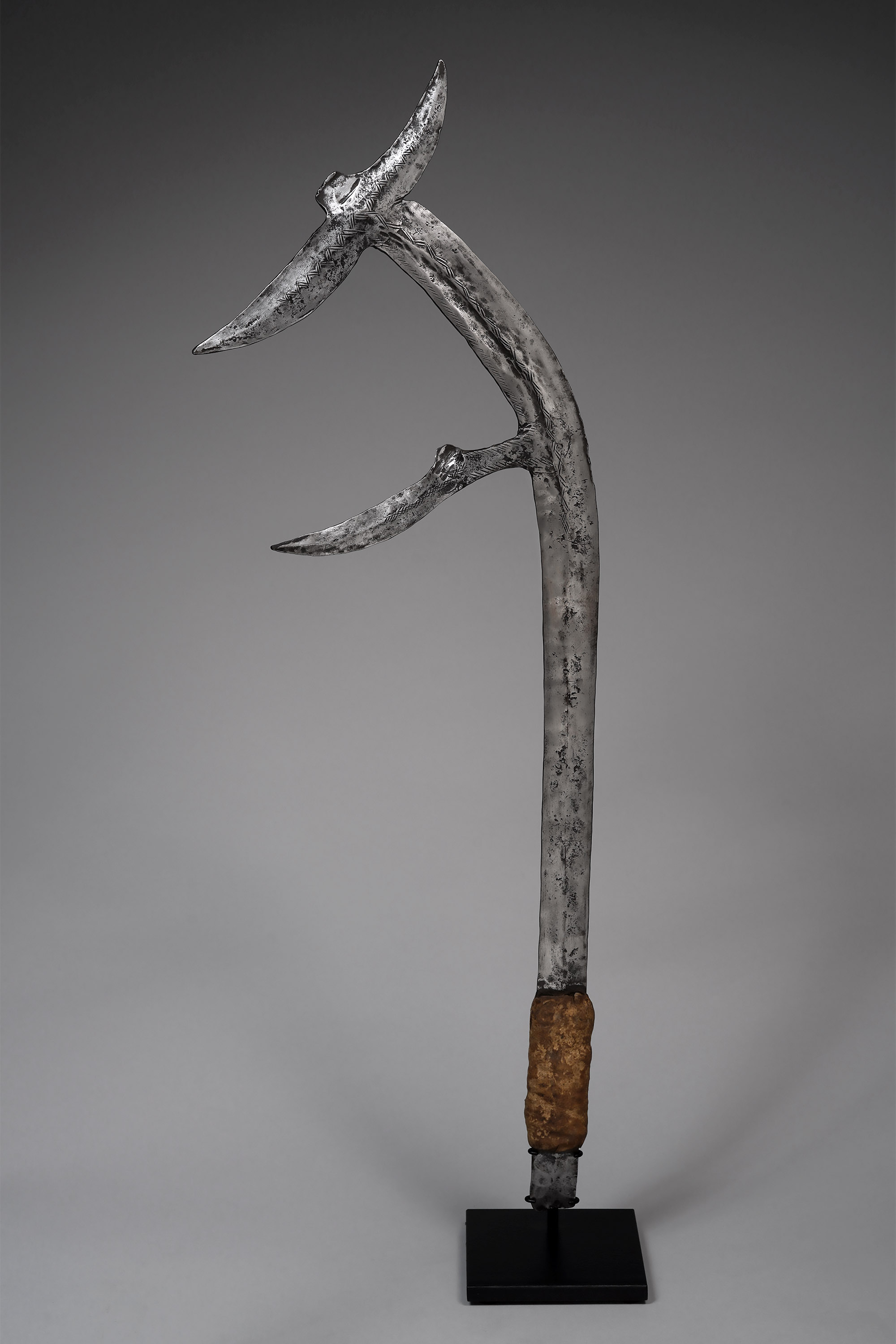 In addition to being used as a handweapon and a missile for war and hunting, the Musri was employed by men and women alike as a ceremonial dancing implement. Depicted in rock drawings from the 18th century, this weapon type is deeply rooted in the tradition and history of the Tubu-Daza (the Teda and Tubu-Daza are subgroups of the Tubu).