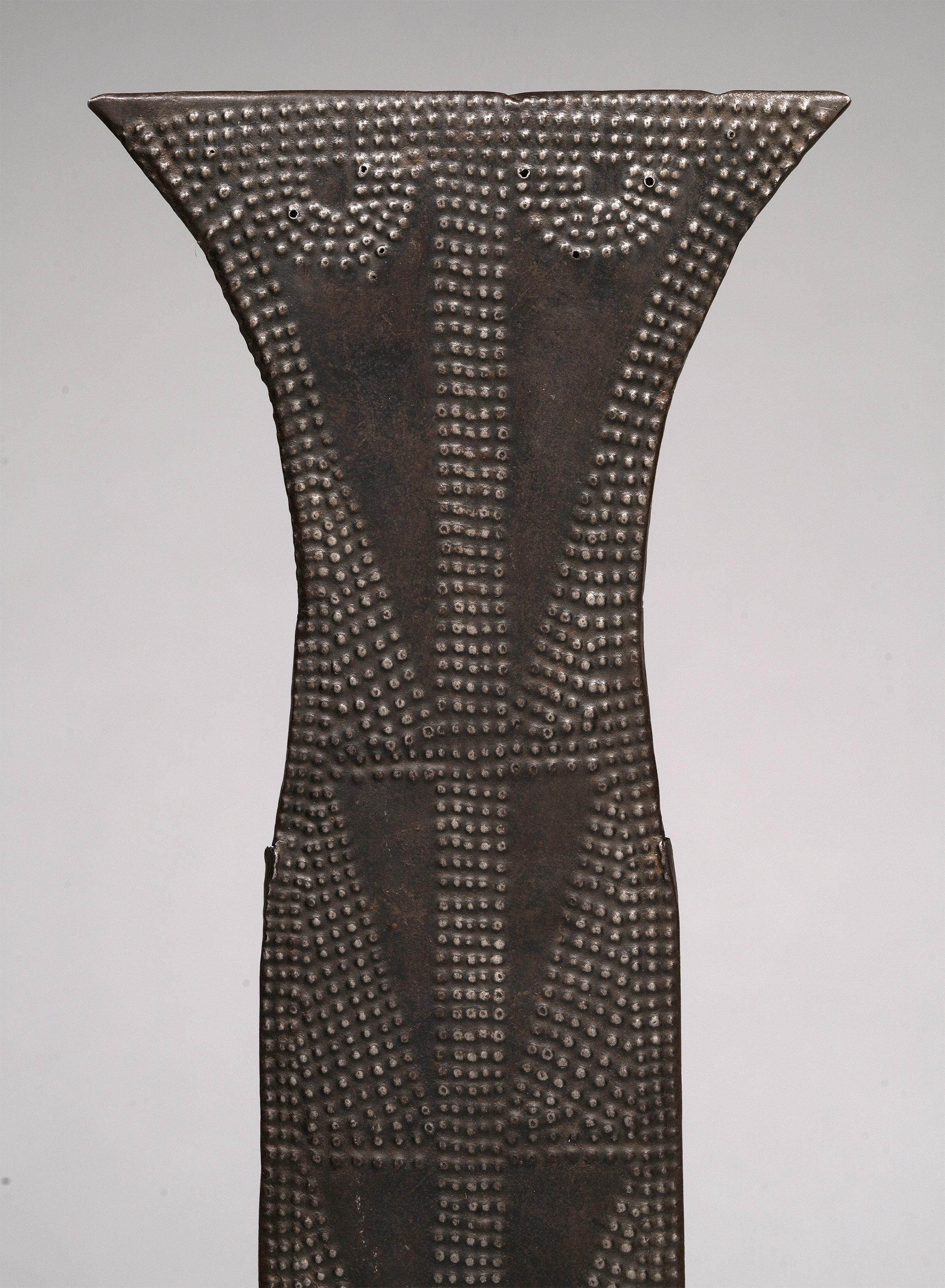 Examples with this type of embossed metal sheath are quite rare. Two of them (in my archive) were published in Felix & GE (Eds.), Fatal Beauty: Traditional Weapons from Central Africa, 2009, [Orange edition] fig. 59b.