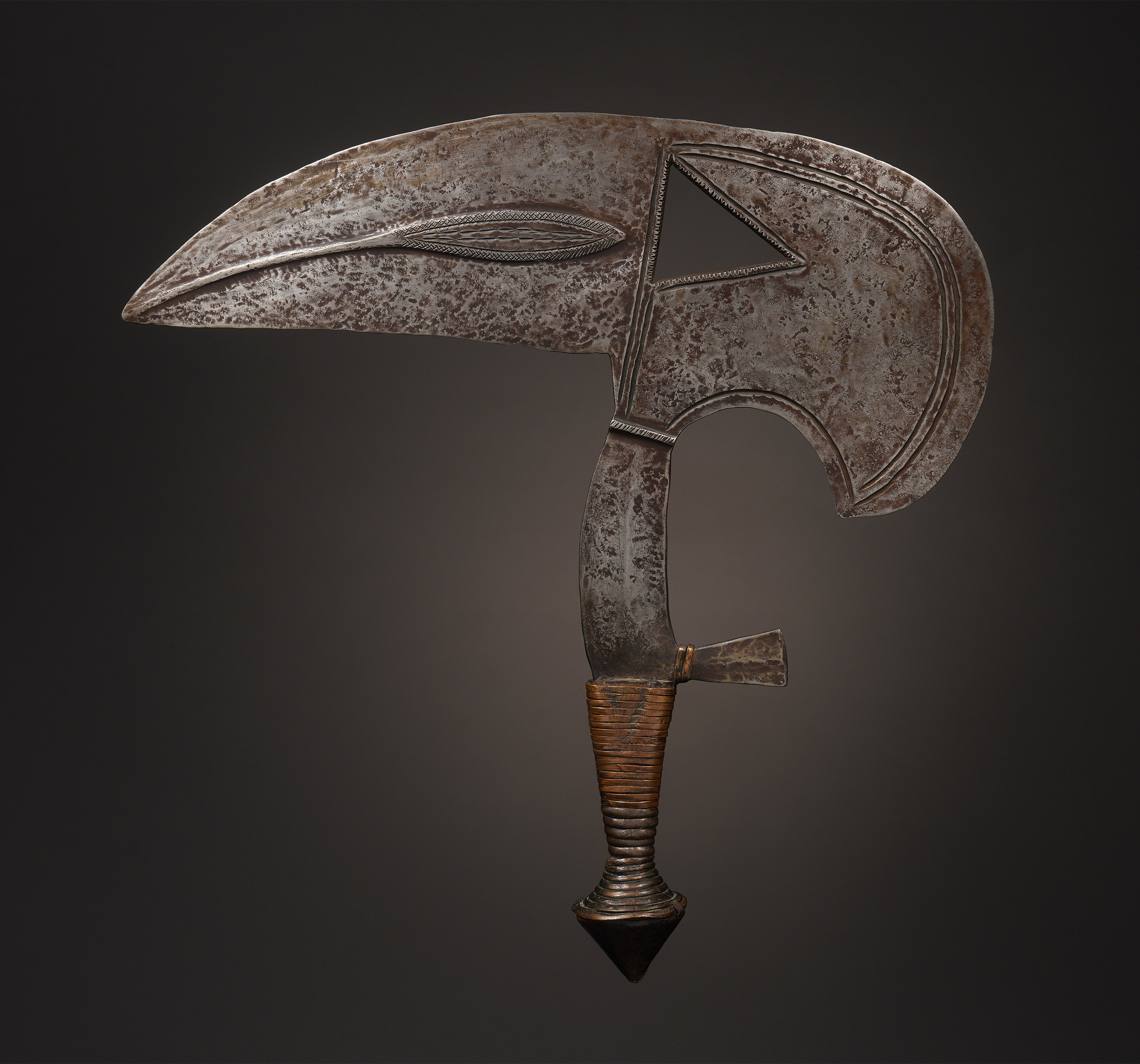 Iron, brass, leather, wood, copper