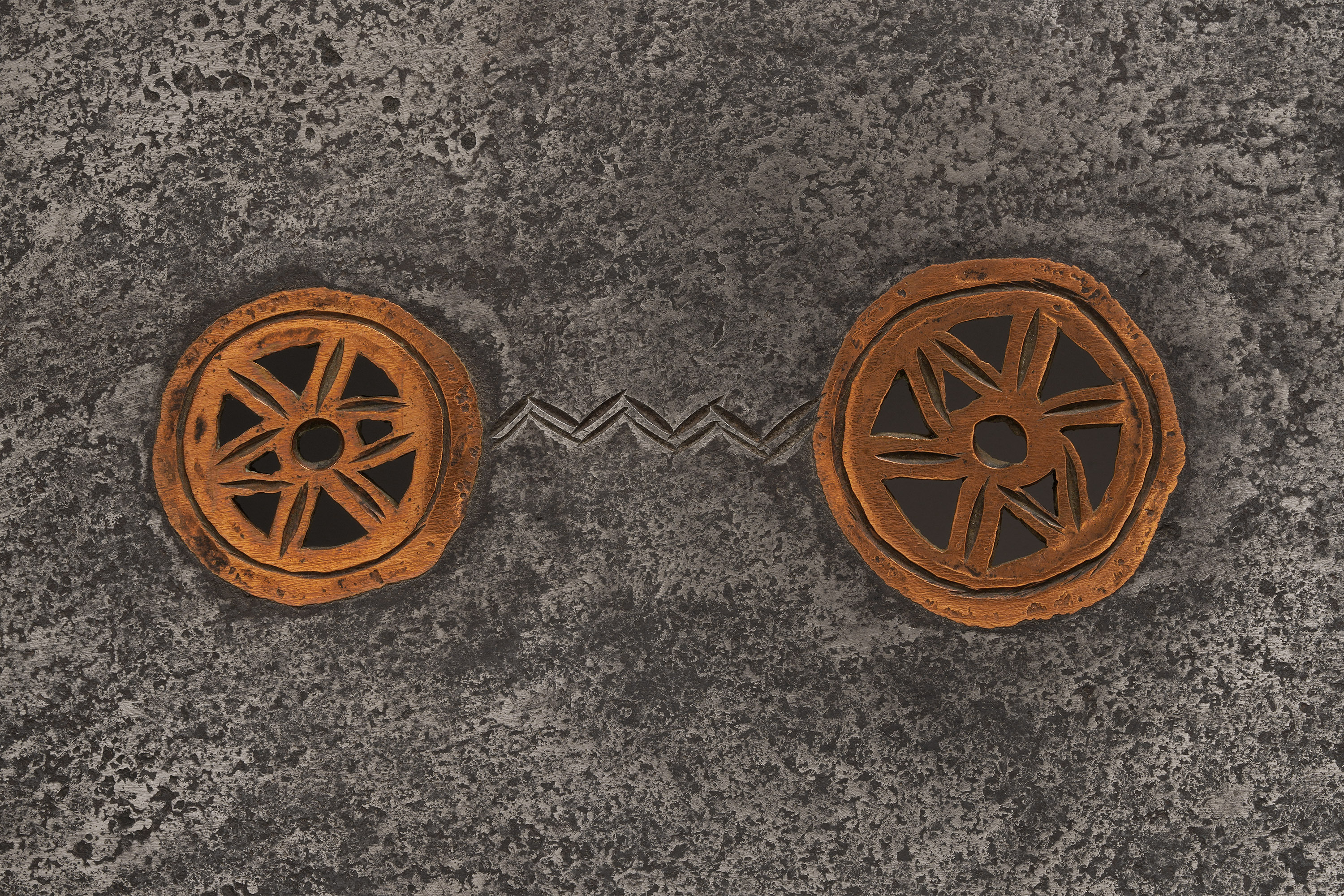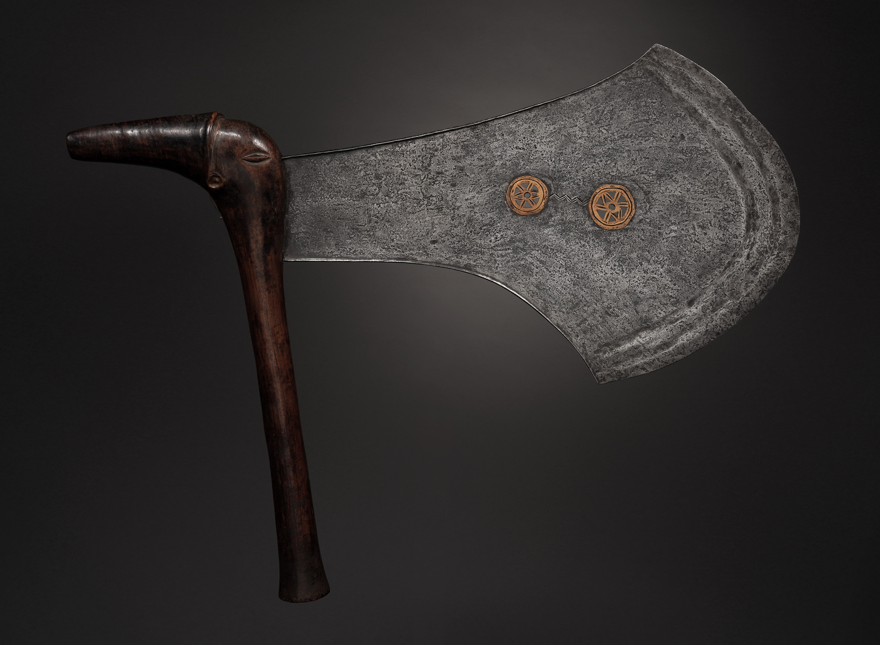 Inauthentic Ceremonial Prestige Axe Malléla Songye-Sanga, D.R. Congo Iron, wood, copper Provenance dates back to